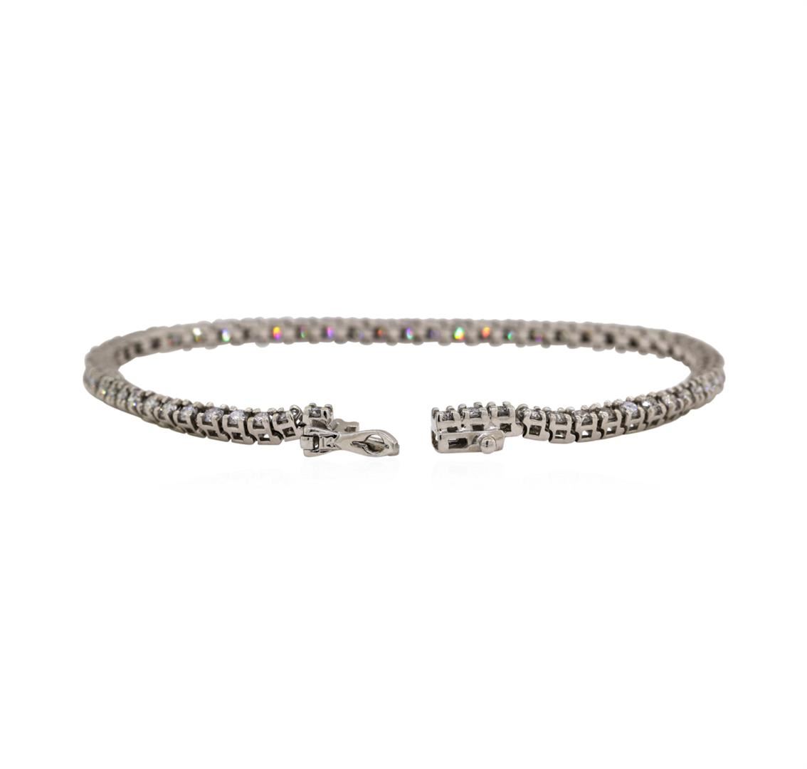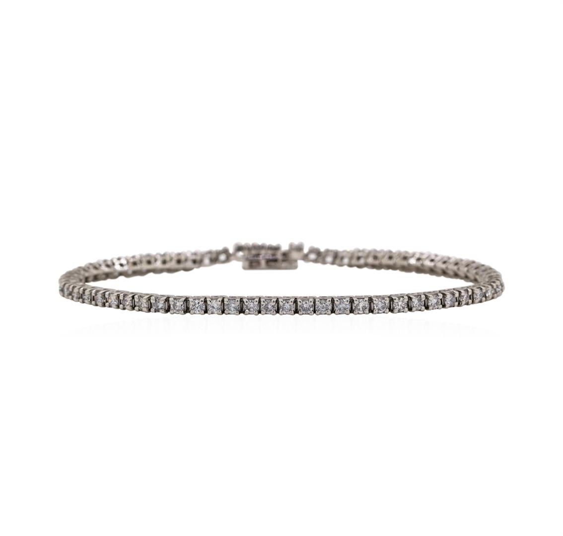One electronically tested 14KT white gold lady's combination cast & assembled fashion tennis bracelet with a tongue clasp & foldover safety with a bright polish finish. The featured lady's bracelet measures approximately seven inches in length. Identified with markings of '14K'. Condition is like new, good workmanship. Containing: Sixty-Two prong set round brilliant cut diamonds, measuring 2.40 - 2.30 x 1.46mm (depth est.) approximate total weight of 62 Stones = 3.00ct. Graded in the setting. Color I - J Clarity SI-2 to I-1 Cut Good. Total Weight of Diamonds 3.00ct. Total Weight of Bracelet 10.10gm. GAS Appraised.