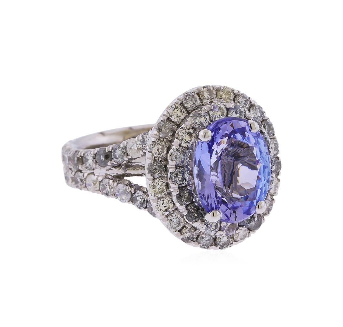 Containing 14K White Gold with a total gross weight of 8.33 grams. (1) Tanzanite Gemstone weighing approximately 3.43 ctw, and surrounded by approximately 2.57ctw of round cut diamonds with SI clarity and G-H Color. RBGS Appraised.