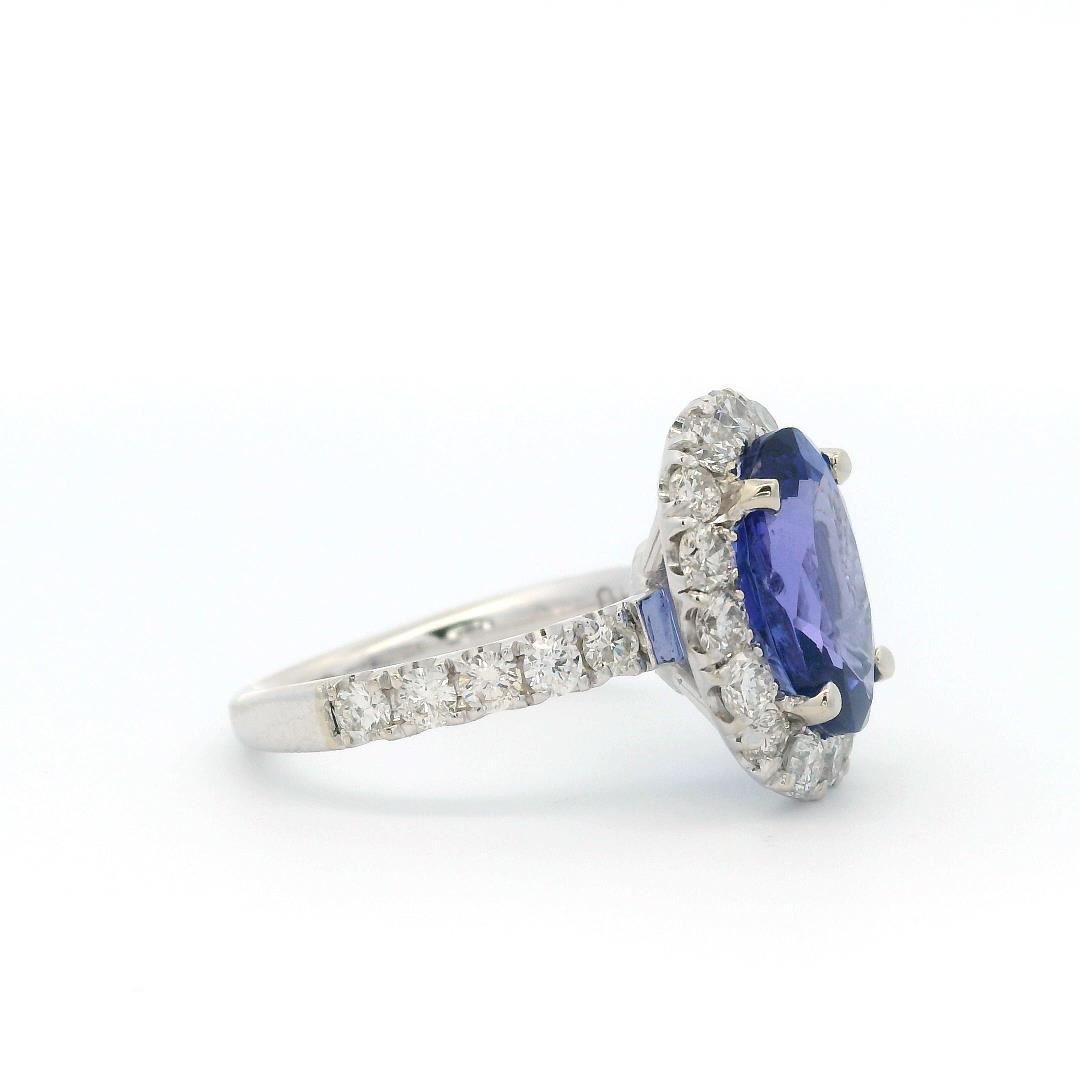 One electronically tested 14KT white gold lady's cast fashion ring with a basket halo with a bright polish finish. Condition is new, good workmanship. The featured lady's ring has a shank measuring 2.10 millimeters wide. Identified with markings of "14K". GAS Appraised.