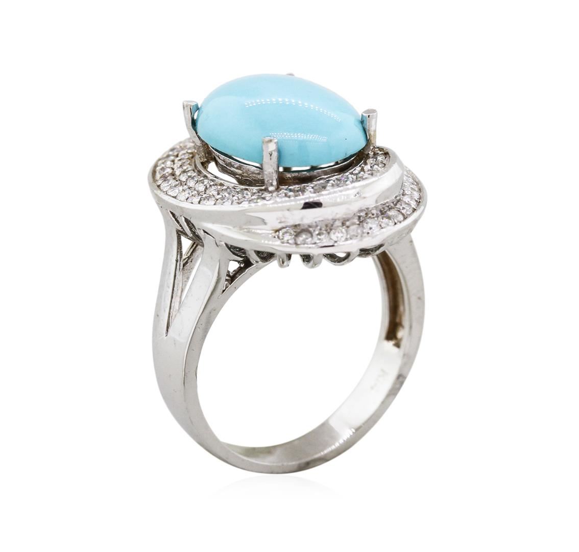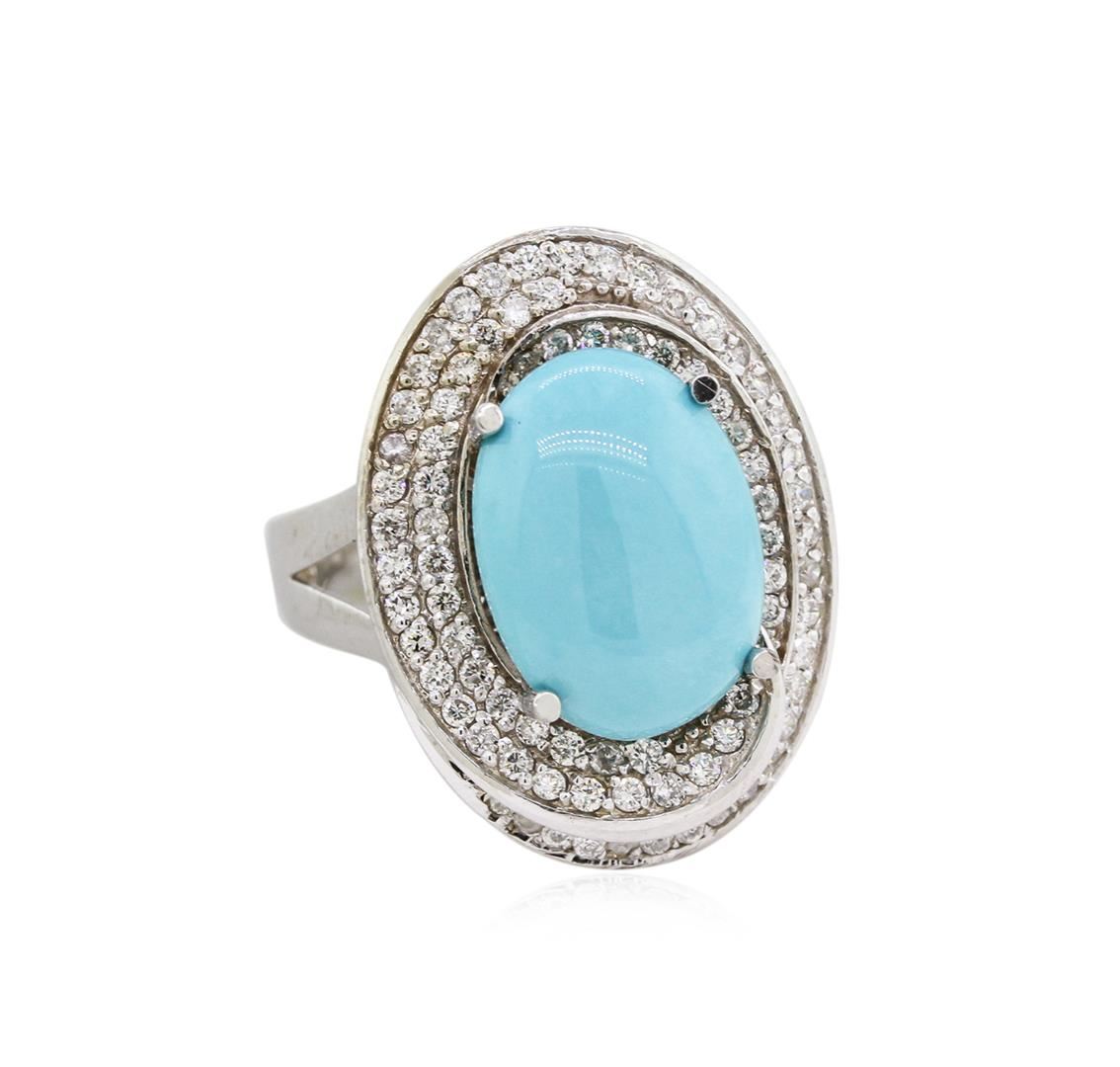 One ring featuring: 14KT white gold weighing 6.68 grams containing one turquoise with a total weight of 3.79ct and diamonds with a total weight of 0.67ct.