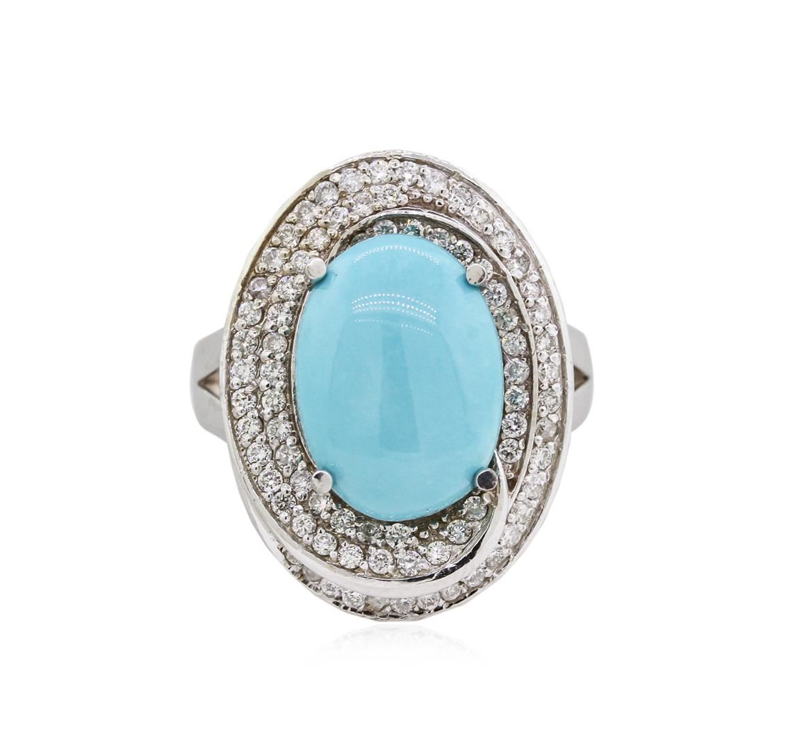 One ring featuring: 14KT white gold weighing 6.68 grams containing one turquoise with a total weight of 3.79ct and diamonds with a total weight of 0.67ct.