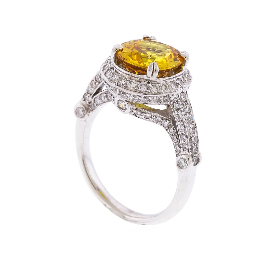 14KT White Gold 3.86 ctw Yellow Sapphire and Diamond Ring