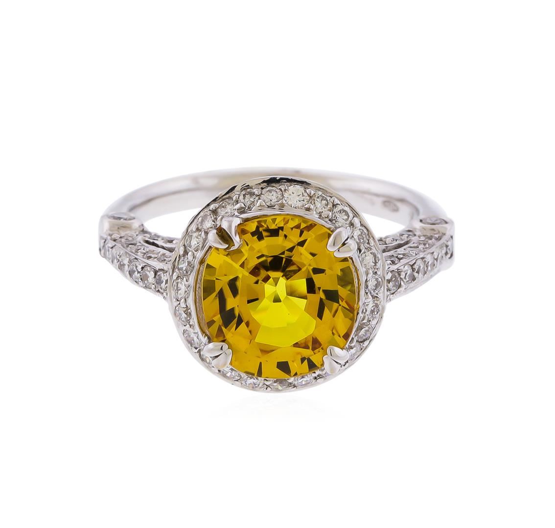 14KT White Gold 3.86 ctw Yellow Sapphire and Diamond Ring