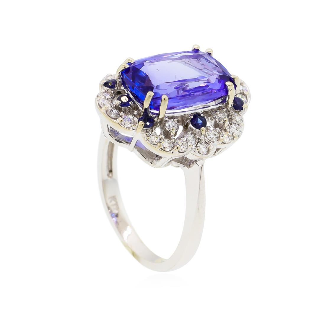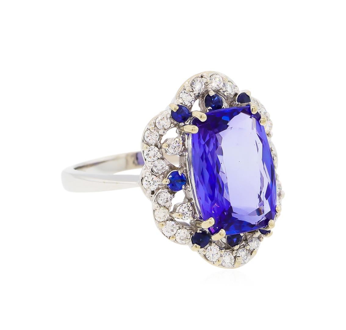 14KT White Gold 5.49ct Tanzanite, Sapphire, and Diamond Ring