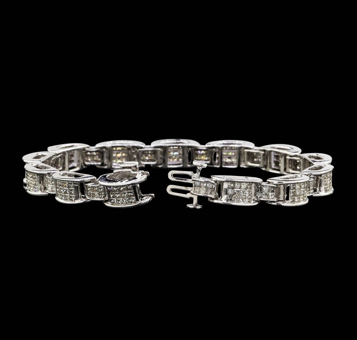 One electronically tested 14KT white gold lady's combination cast & assembled fashion bracelet with a double tongue clasp with foldover safety with a bright polish finish. The featured lady's bracelet measures approximately 7.25 inches in length. Identified with markings of "14K". Condition is new, good workmanship. Containing: Two Hundred Thirty-Four invisible set princess cut diamonds, measuring 1.70 x 1.65 x 1.24mm (depth est.) approximate total weight of 234 Stones = 6.67ct. Graded in the setting. Clarity: SI-1 to I-1. Color: H - JCut Good. Total Weight of Diamonds 6.67ct. Total Weight of Bracelet 26.30gm. GAS Appraised.