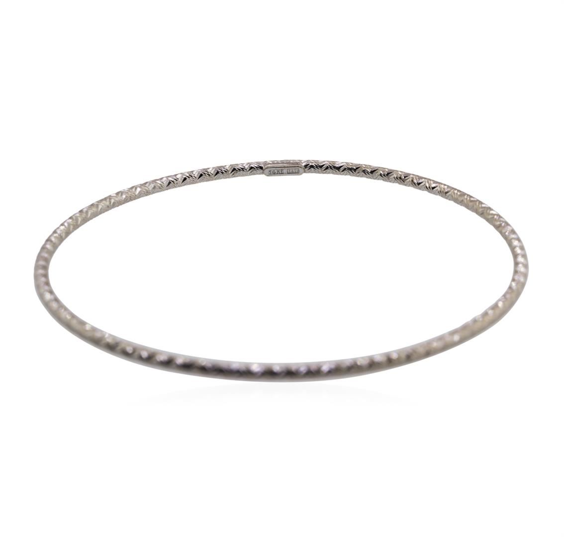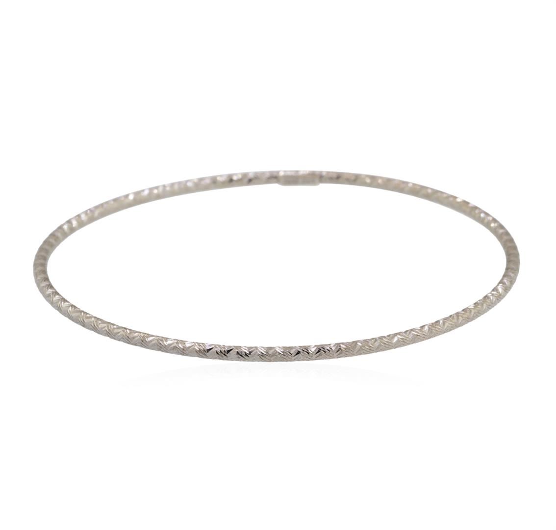 One bangle bracelet featuring: 14KT white gold weighing 3.0 grams.
