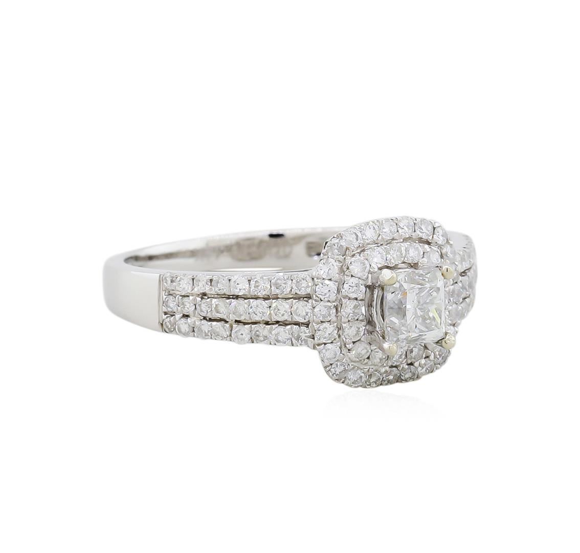 One electronically tested 14KT white gold ladies cast diamond unity ring with a bright finish. The featured diamond is set within a tiered diamond bezel, supported by diamond set shoulders, completed by a two millimeter wide band. Trademark is Orianne. Identified with markings of "14K". Condition is new, good workmanship. Containing: One prong set princess cut diamond, measuring 4.11 x 3.89 x 3.39mm exact weight 0.47ct. Graded loose prior to setting in the EGL Laboratory, Report # EGL3406150221. The report is attached. Clarity: SI-3. Color: FDepth 87.3%. Table 63.0%. Eighty-Eight prong set round brilliant cut diamonds, measuring 1.20 - 1.20 x 0.72mm (depth est.) approximate. Total Weight of 88 Stones = 0.55ct. Graded in the setting. Clarity: I-1 to I-2. Color: H - I. Total Weight of Diamonds 1.02ct. AIG Appraised at $4,450.00.