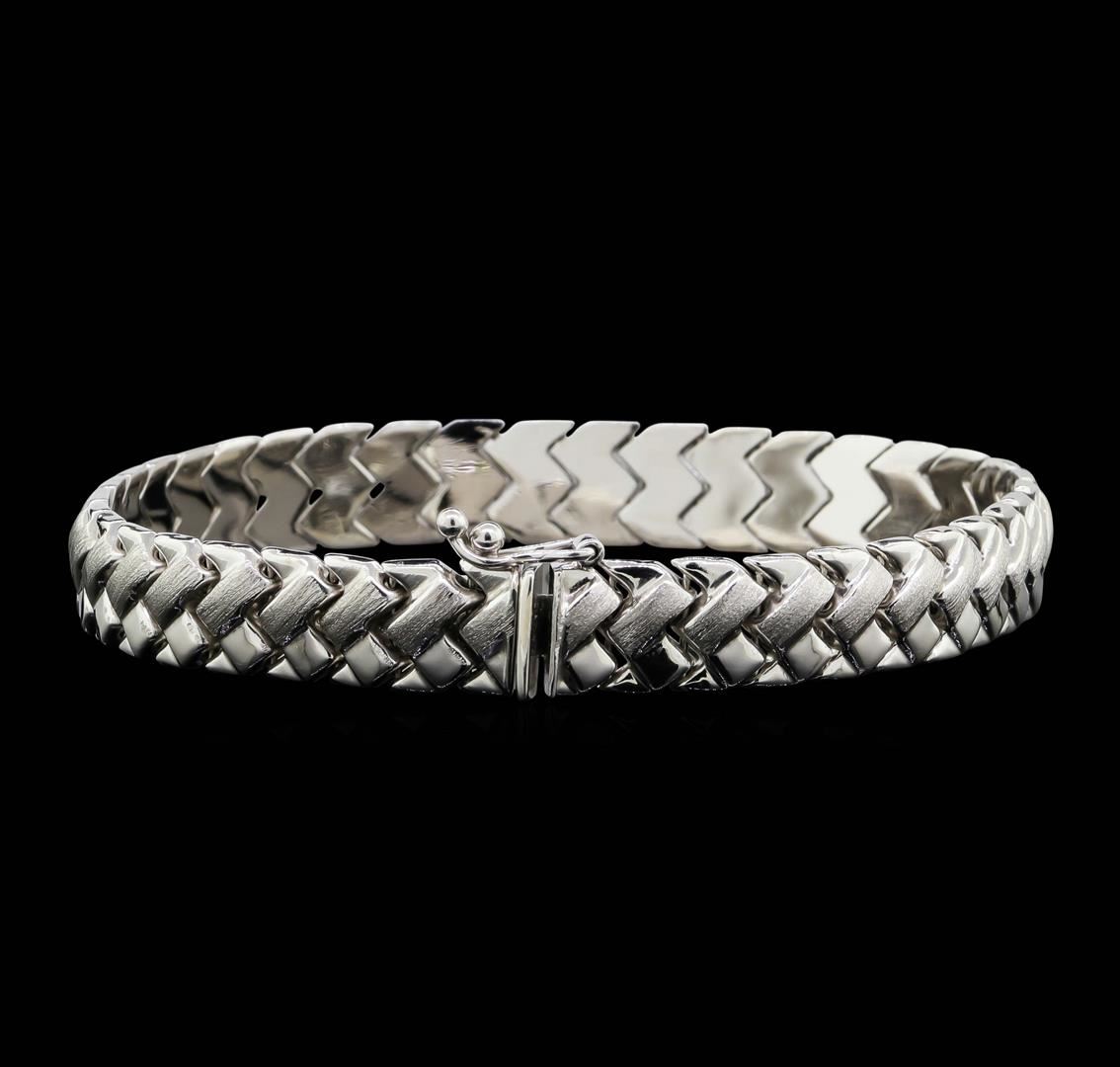 14KT White Gold High Polish and Satin Finish Woven Bracelet