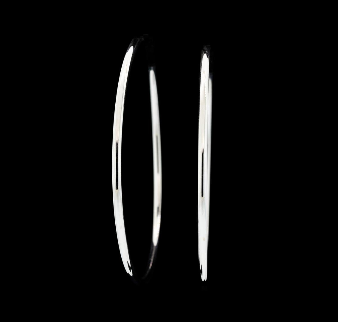 One pair of lady's hoop earrings featuring: 14KT white gold weighing 3.1 grams.
