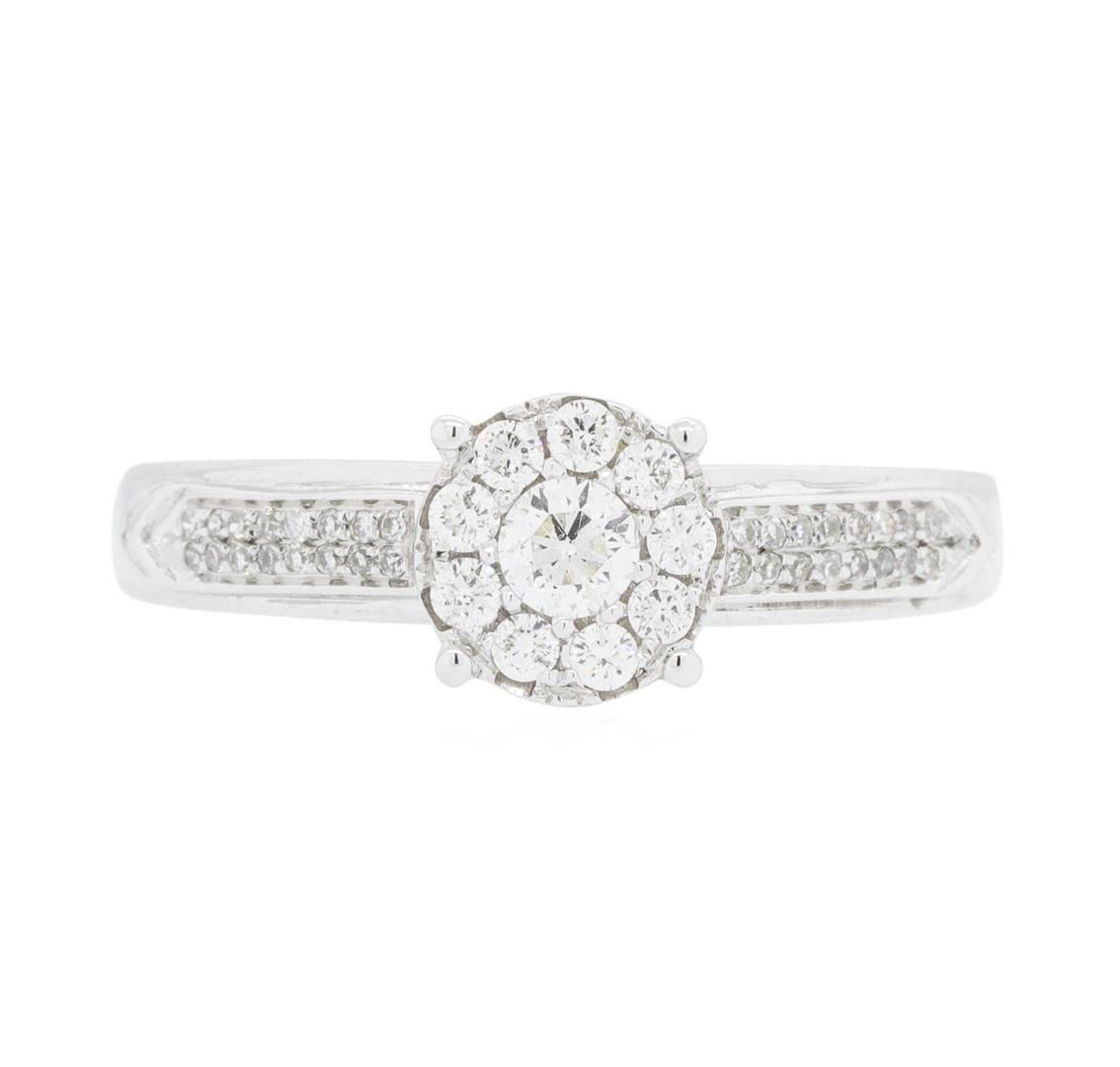 One lady's ring featuring: 14KT white gold weighing 3.0 grams containing diamonds weighing 0.50ctw. The ring is a size 6.5.