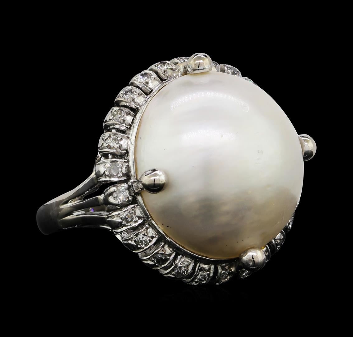 One Ladies ring featuring: 14KT white gold weighing 11.1 grams containing one mabe pearl and diamonds weighing 0.40ctw.