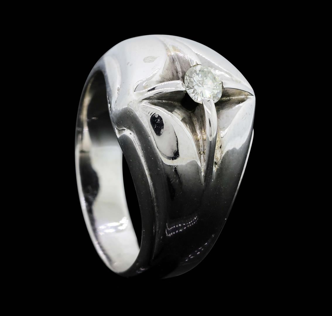 One men's ring featuring: 14KT white gold weighing 9.6 grams containing one diamond weighing 0.25ct. The ring is a size 10.