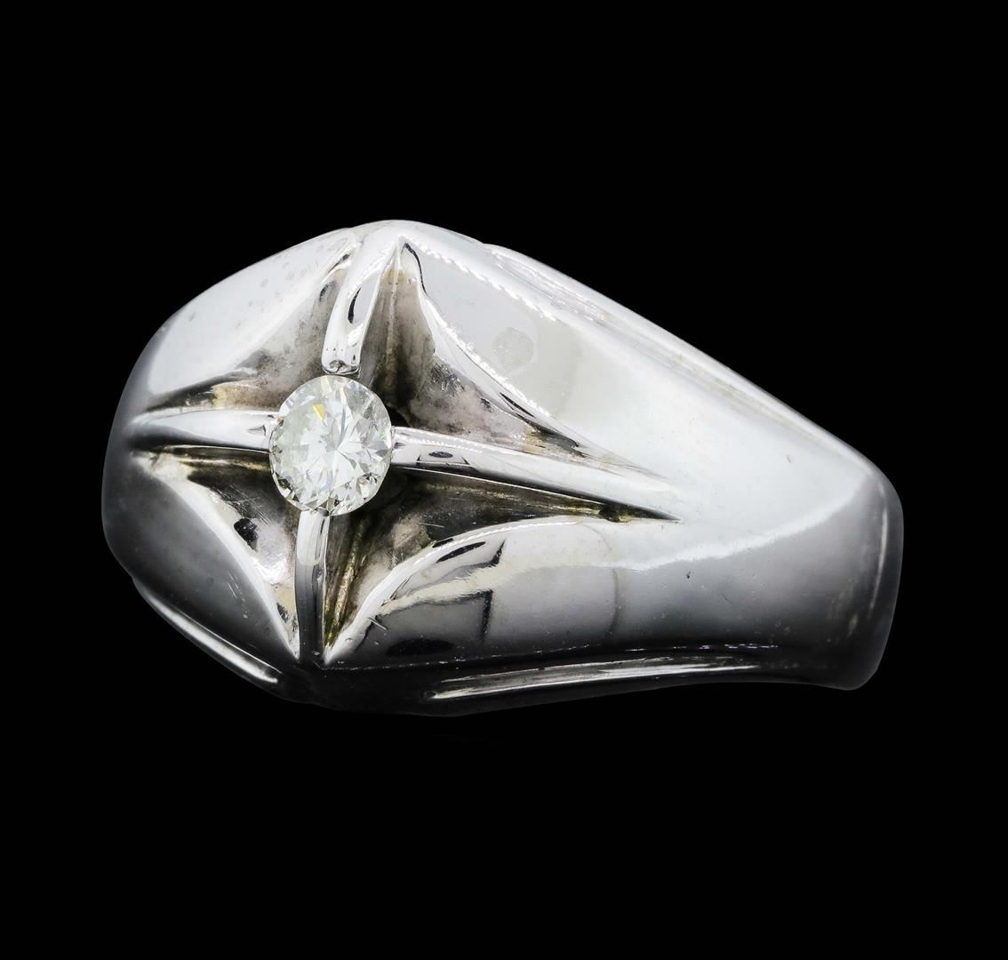 One men's ring featuring: 14KT white gold weighing 9.6 grams containing one diamond weighing 0.25ct. The ring is a size 10.