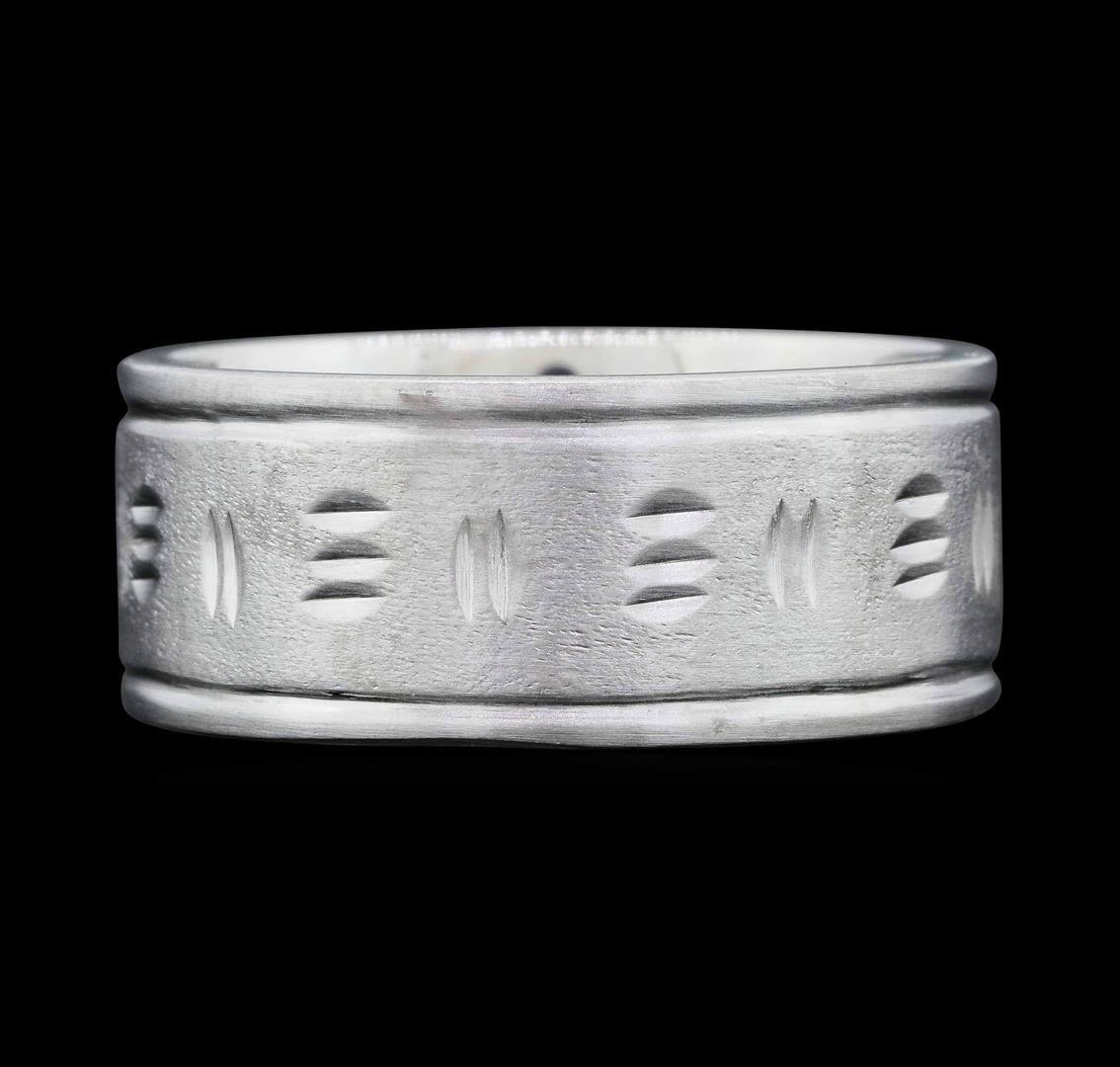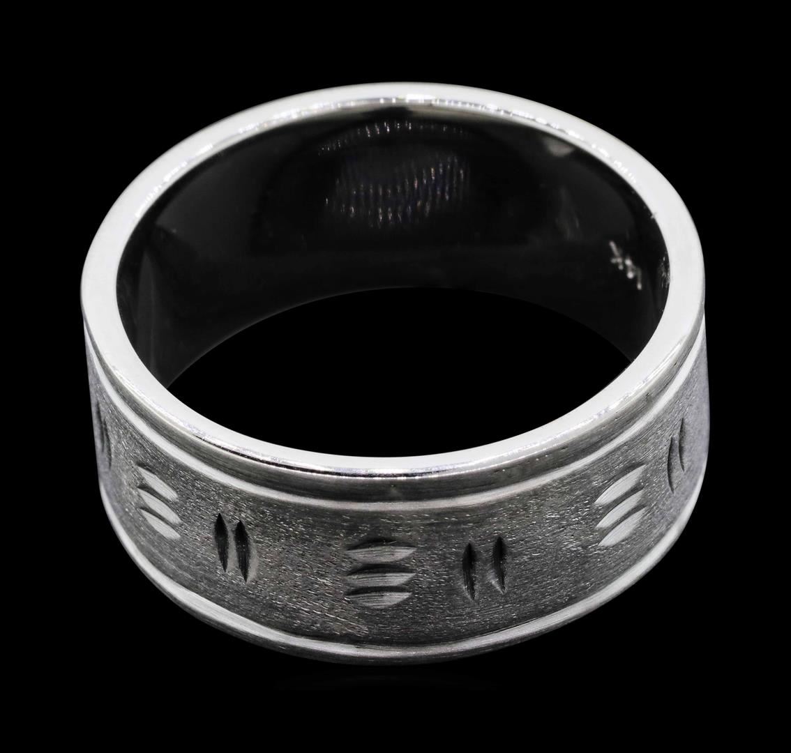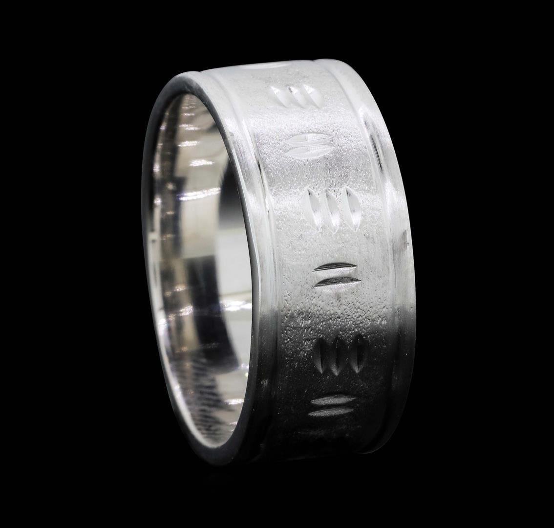 One men's band featuring: 14KT white gold weighing 10.7 grams. The ring is a size 10.5.