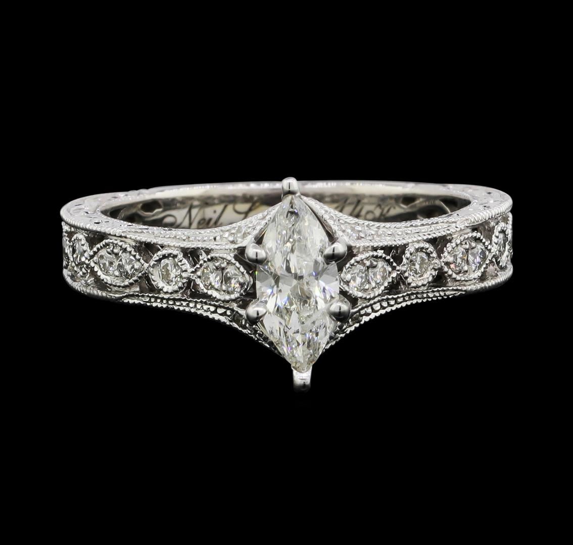 One Ladies wedding ring designed by Neil Lane featuring: 14KT white gold weighing 4.0 grams containing one center marquise diamond weighing 0.50ct and side diamonds weighing 0.30ctw.