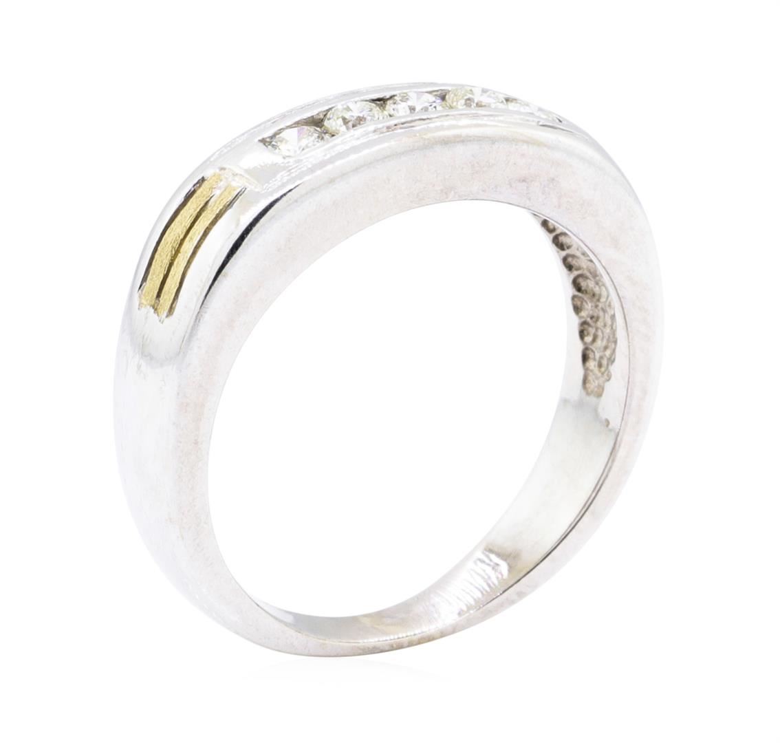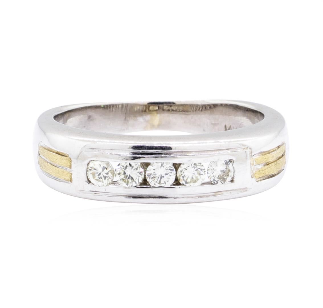 One band featuring: 14KT white gold and yellow weighing 6.0 grams containing diamonds weighing 0.25ctw. The ring is a size 7.5.