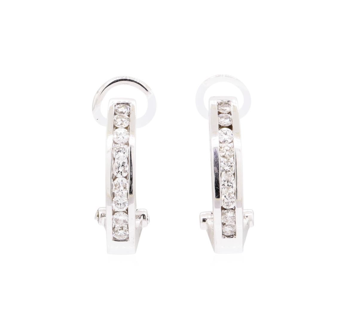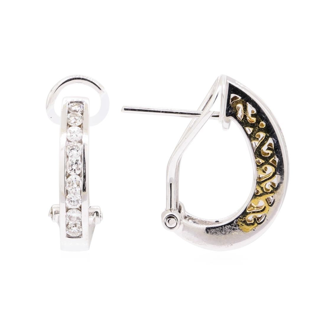 One pair of j-style earrings with clip backs and posts featuring: 14KT white and yellow gold weighing 4.6 grams containing diamonds weighing 0.50ctw.