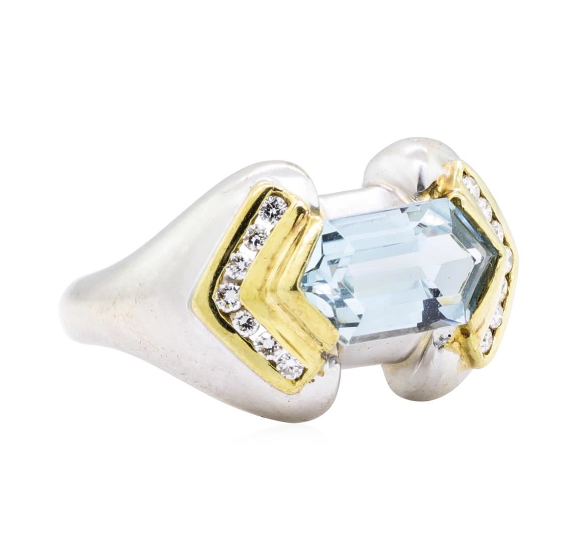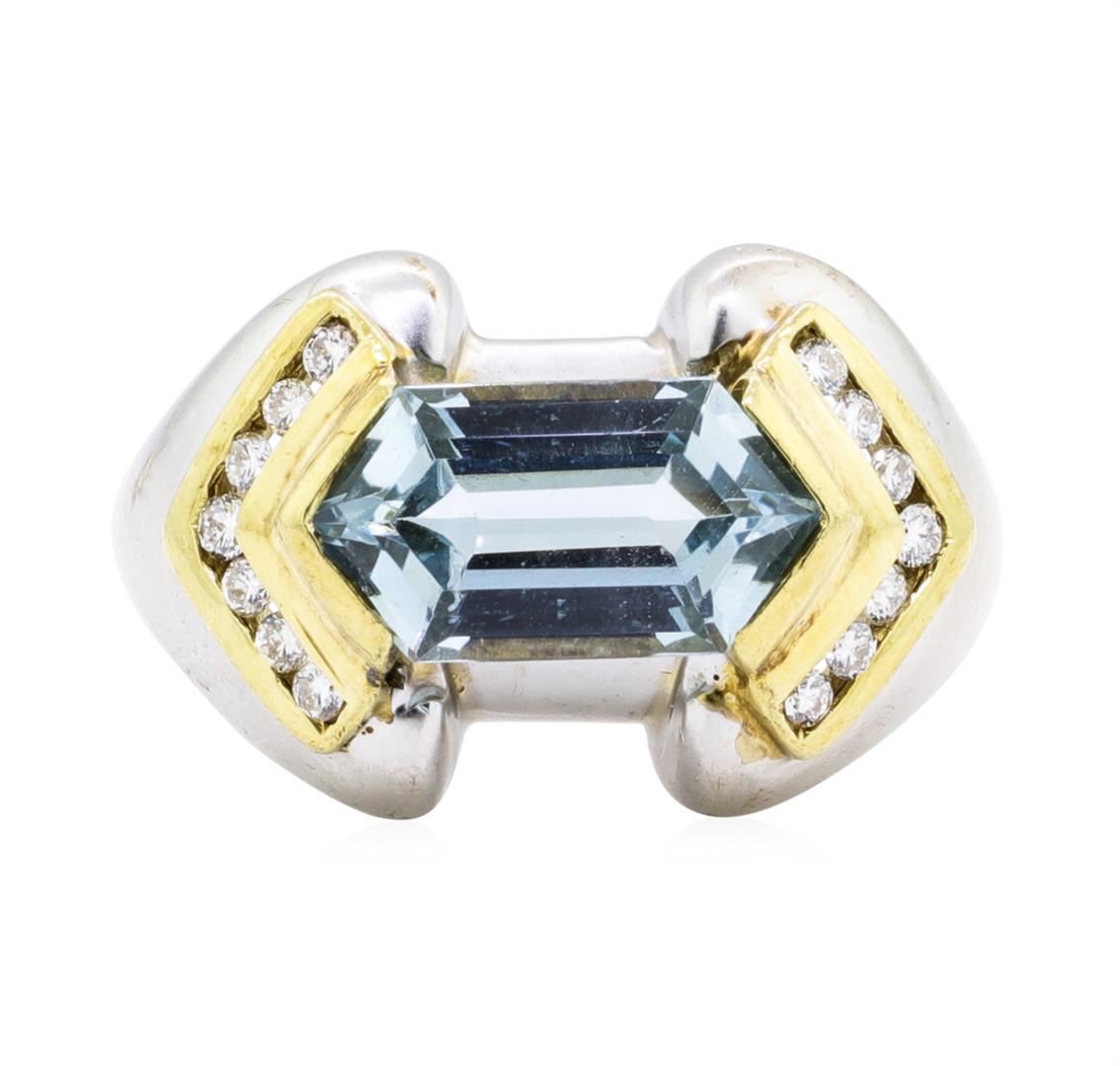 14KT White and Yellow Gold 2.16 ctw Aquamarine and Diamond Ring