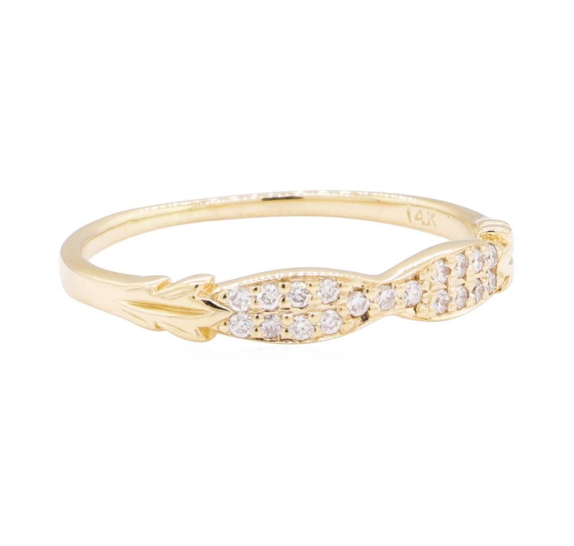 One band featuring: 14KT yellow gold weighing 1.4 grams containing diamonds weighing 0.15ctw. The ring is a size 6.