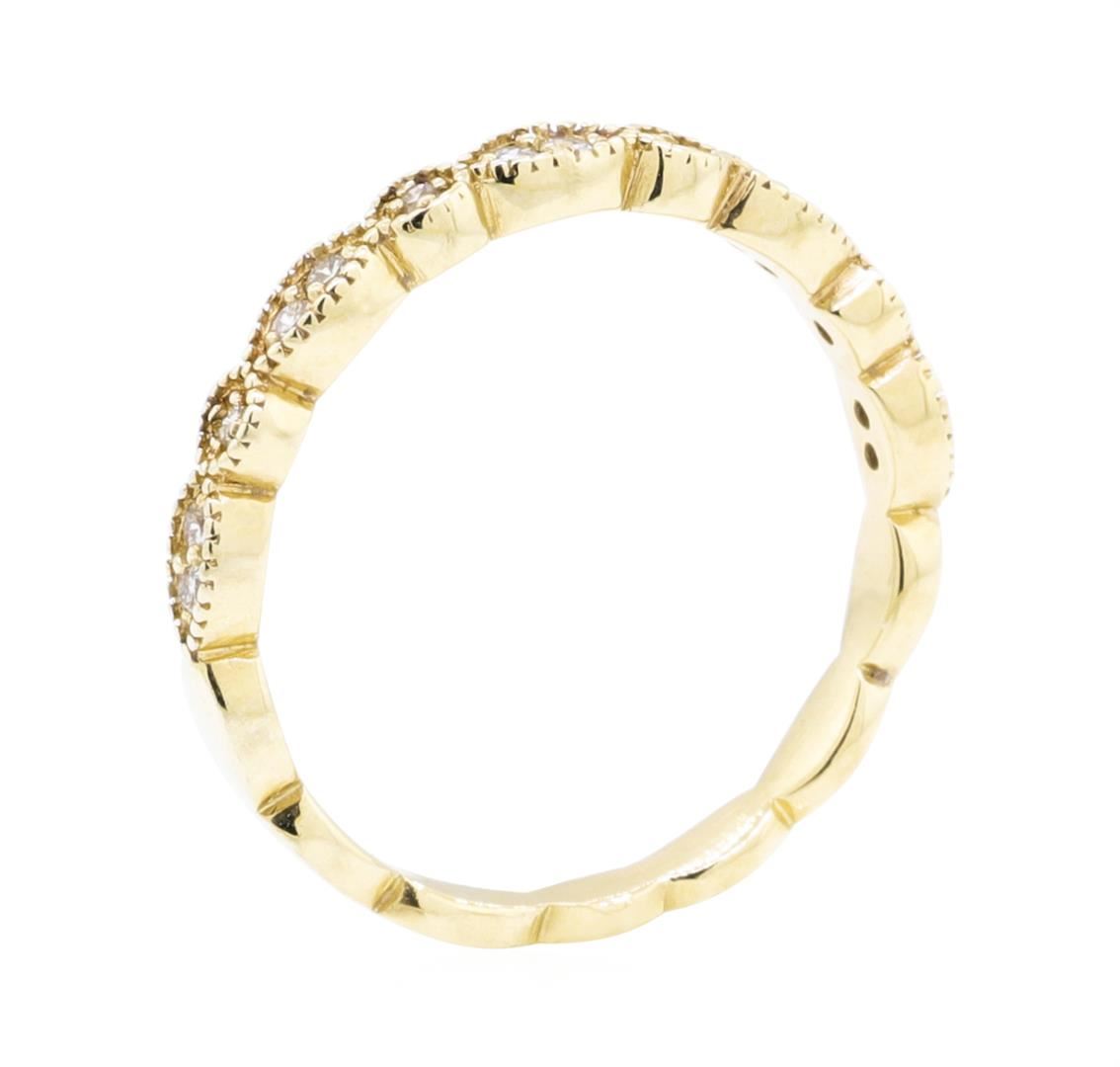 One ring featuring: 14KT yellow gold weighing 1.7 grams containing diamonds weighing 0.15ctw. The ring is a size 5.5.
