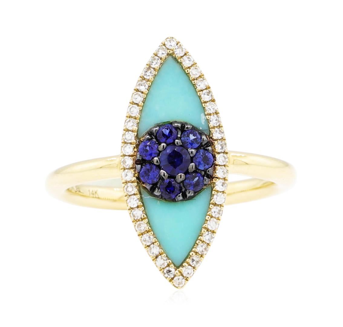 14KT Yellow Gold 0.16 ctw Sapphire and Diamond Evil Eye Ring