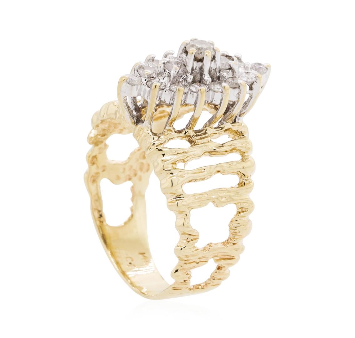 One lady's ring featuring: 14KT yellow gold weighing 4.1 grams containing diamonds weighing 0.25ctw. The ring is a size 6.