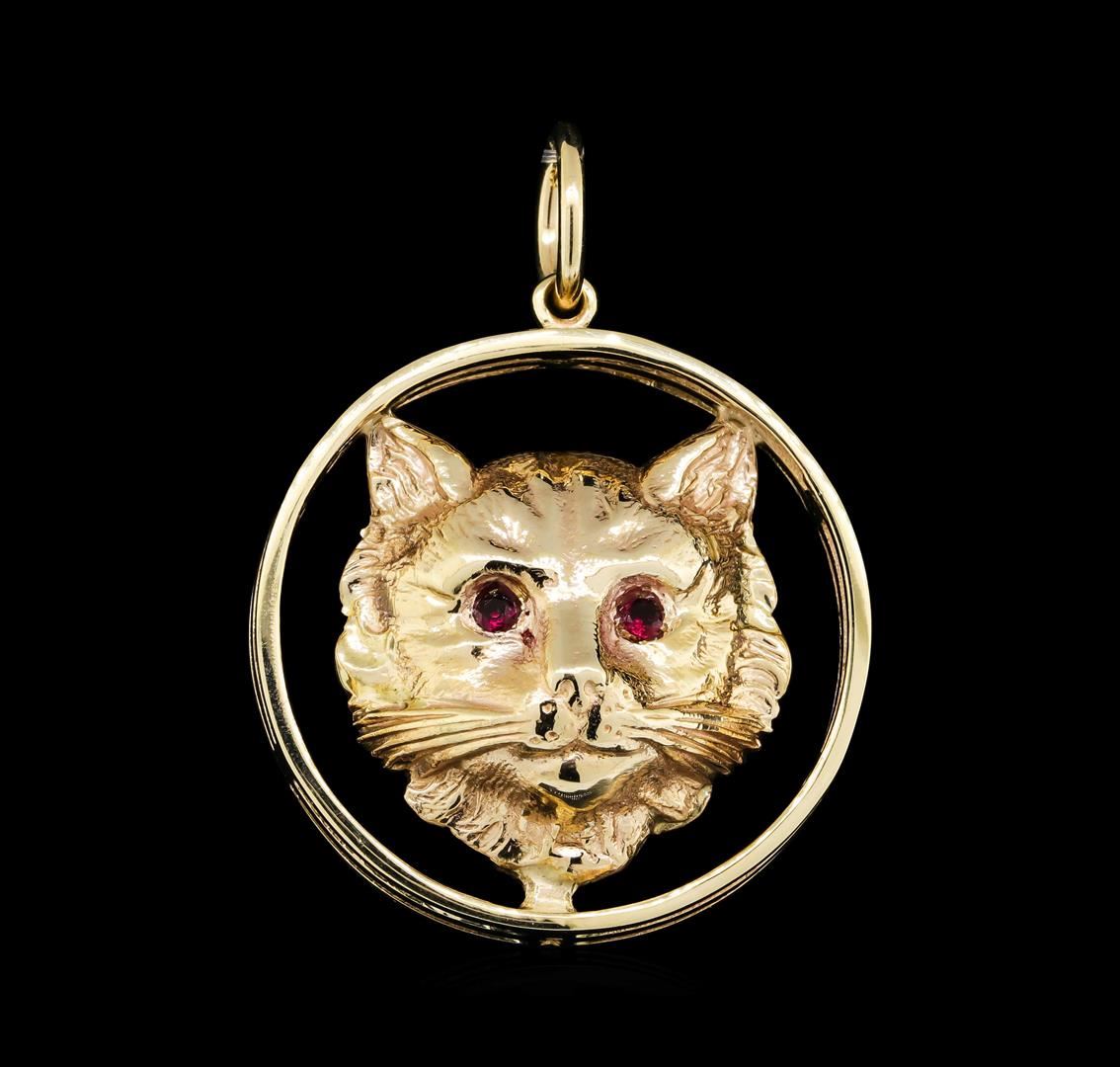 One Ladies pendant featuring: 14KT yellow gold weighing 16.7 grams containing rubies weighing 0.25ctw.