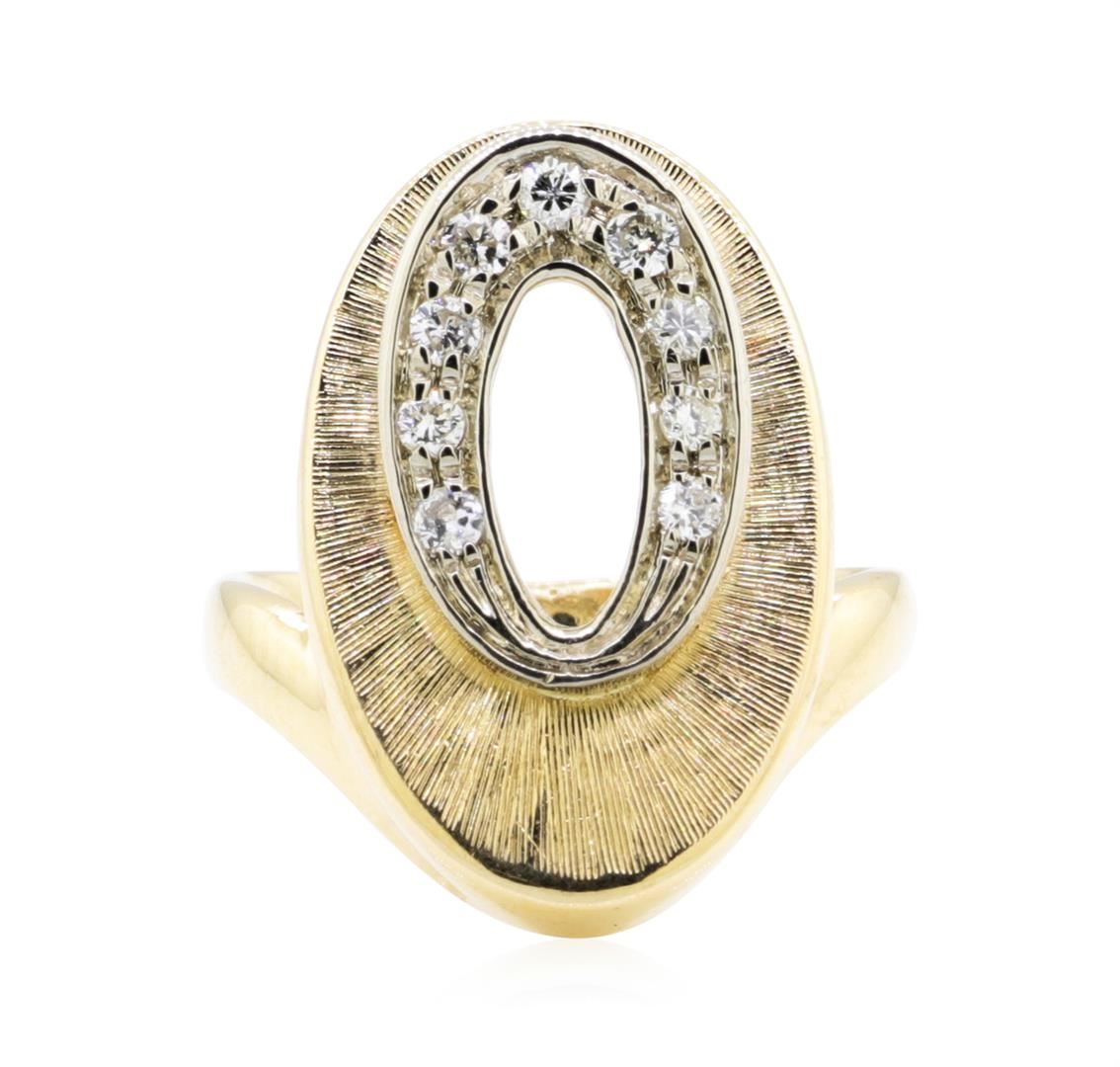 One ring featuring: 14KT yellow gold weighing 6.4 grams containing diamonds weighing 0.30ctw. The ring is a size 5.