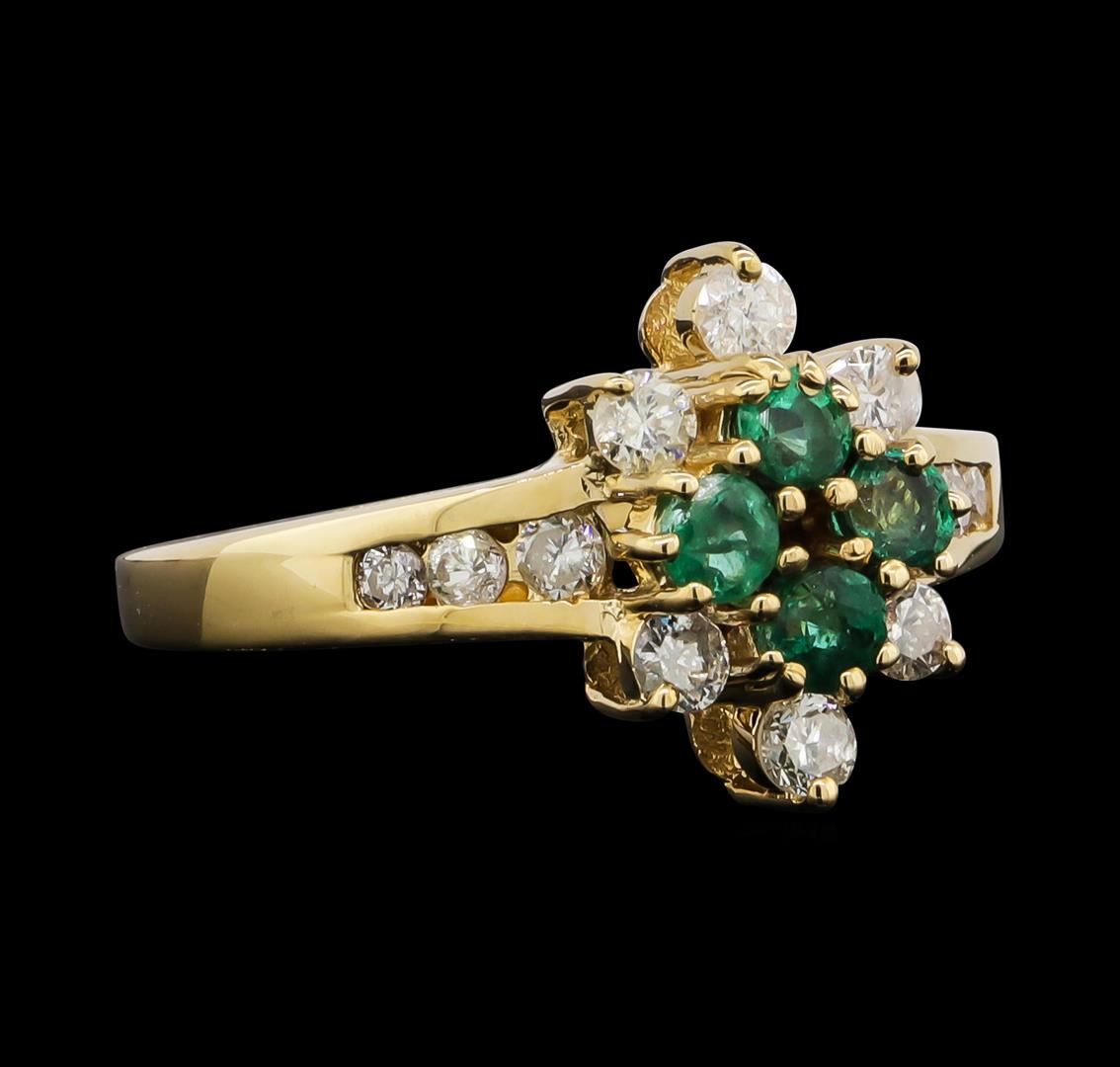 14KT Yellow Gold 0.30ctw Emerald and Diamond Ring. Total weight of emeralds is 0.30cts. Total weight of diamonds is 0.20cts. Total weight of the ring is 3.75 grams.