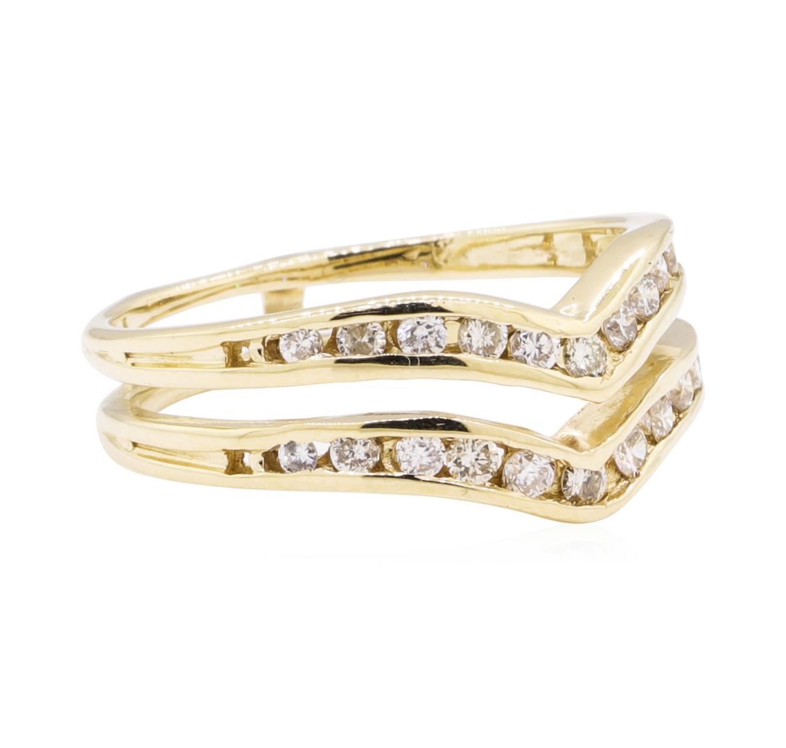 One double chevron lady's ring featuring: 14KT yellow gold weighing 2.9 grams containing diamonds weighing 0.40ctw. The ring is a size 5.5