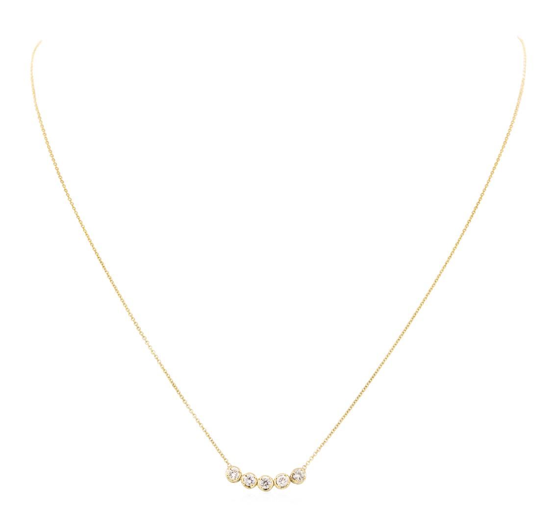 One 5-stone pendant with an attached nineteen inch long 1mm rounded cable link chain featuring: 14KT yellow gold weighing 2.1 grams containing diamonds weighing 0.40ctw.
