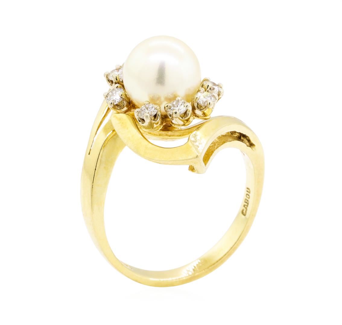 One ring featuring: 14KT yellow gold weighing 6.3 grams containing diamonds weighing 0.40ctw and one cultured pearl measuring 8.4 millimeters. The ring is a size 7.