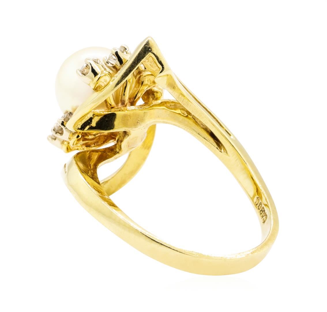 One ring featuring: 14KT yellow gold weighing 6.3 grams containing diamonds weighing 0.40ctw and one cultured pearl measuring 8.4 millimeters. The ring is a size 7.