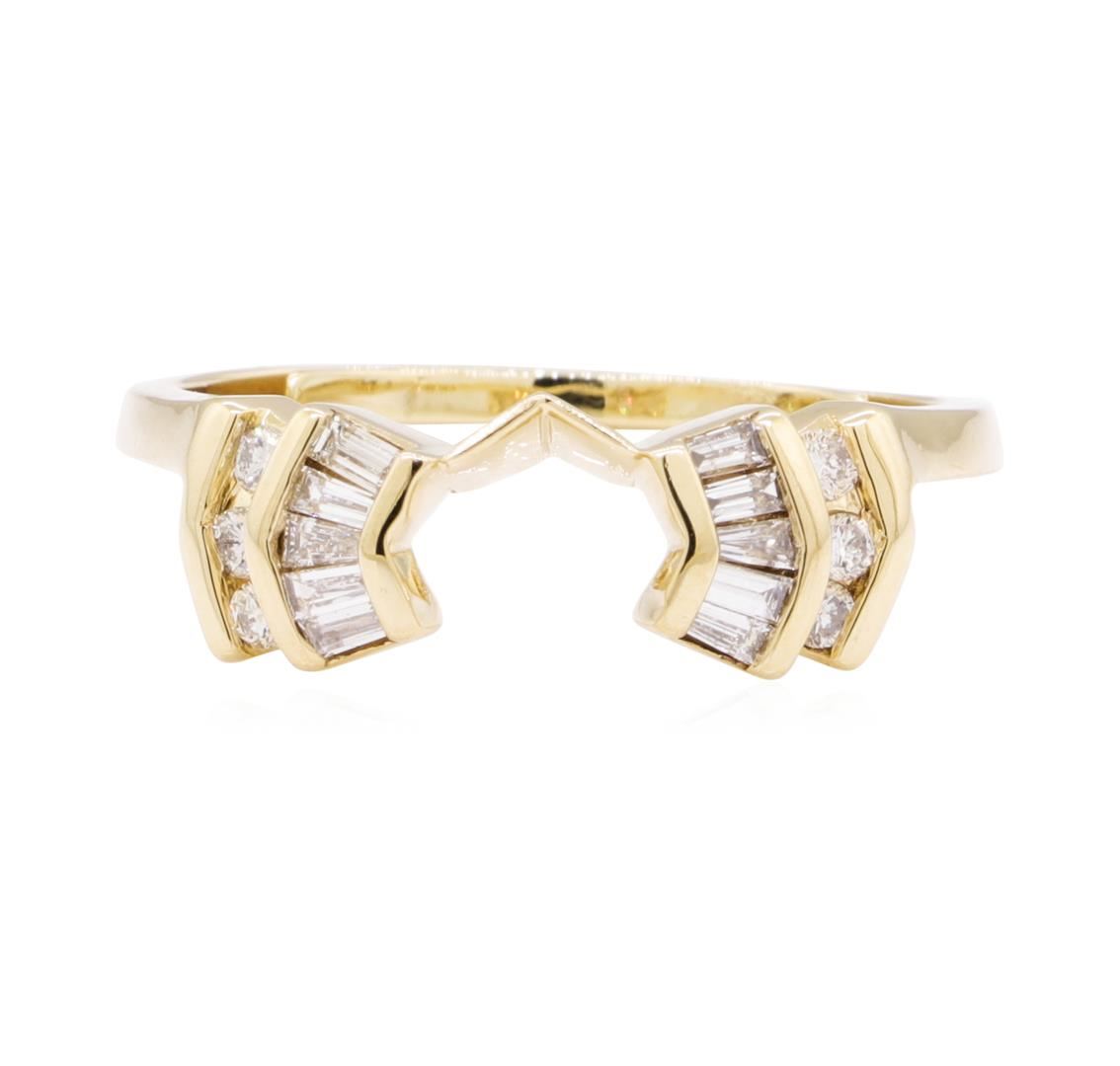 One double row lady's enhancer ring featuring: 14KT yellow gold weighing 3.4 grams containing diamonds weighing 0.50ctw. The ring is a size 8.5.
