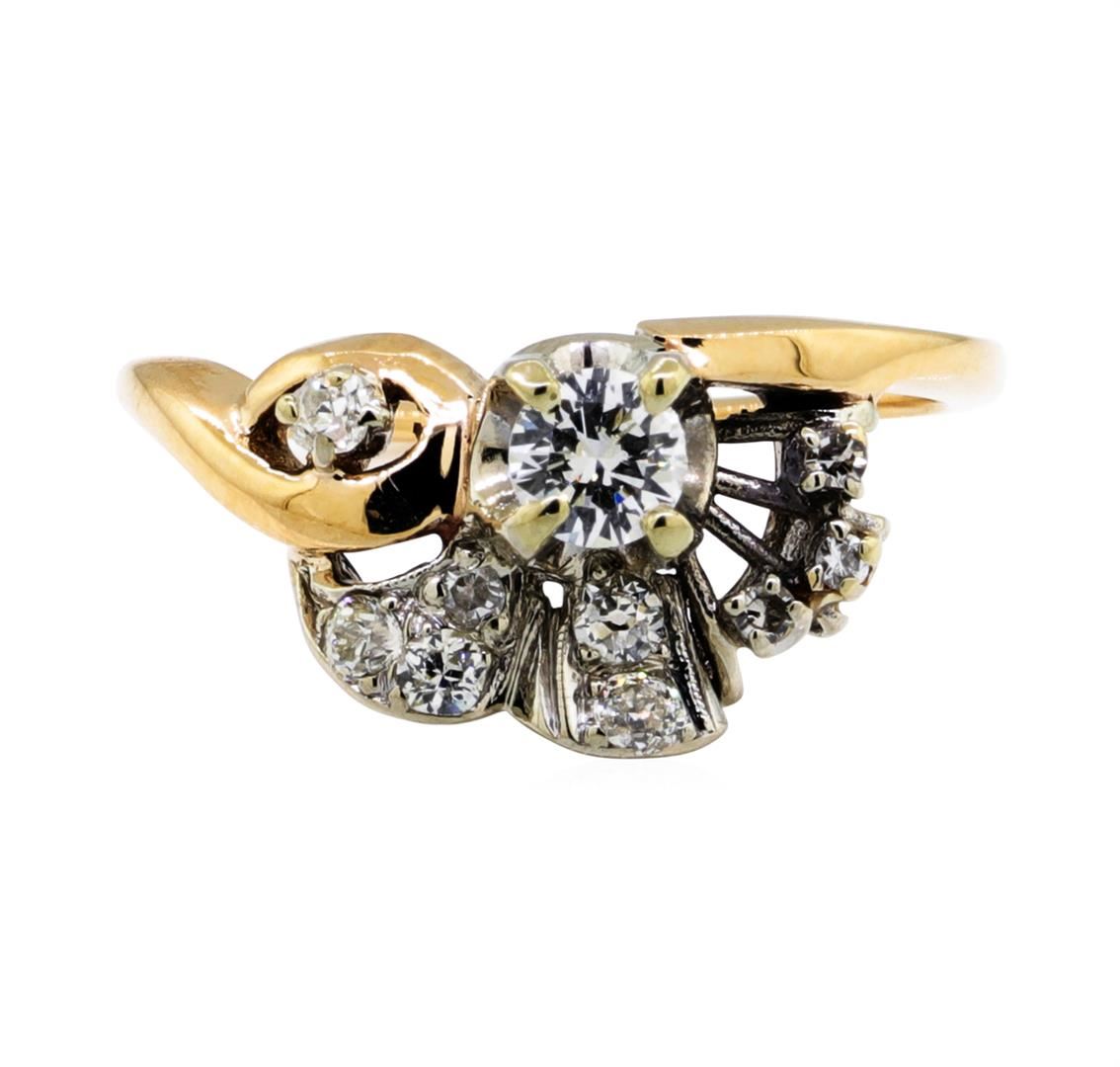 One ring featuring: 14KT yellow gold weighing 3.9 grams containing diamonds weighing 0.50ctw. The ring is a size 8.