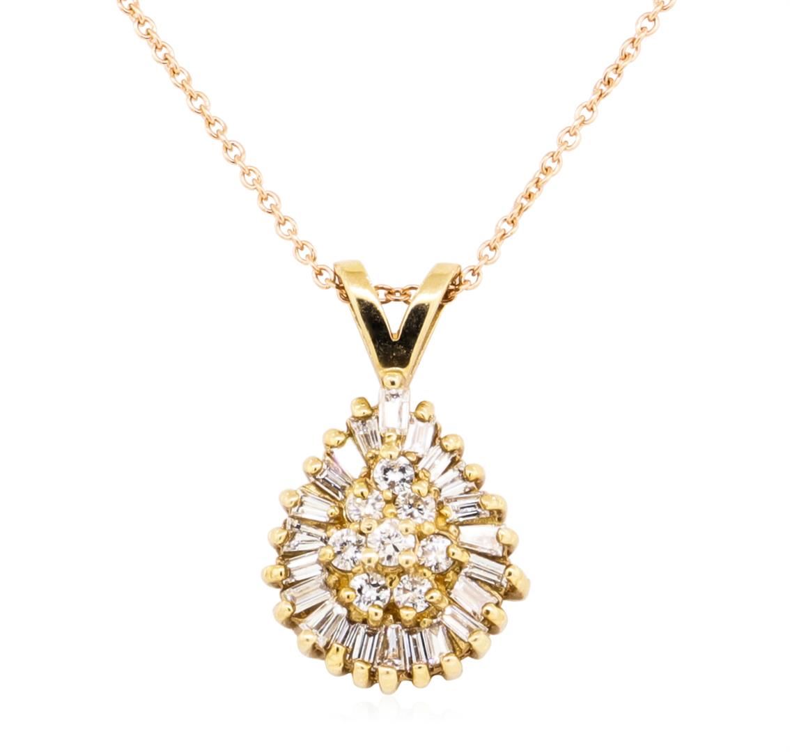 14KT Yellow Gold 0.50 ctw Diamond Teardrop Shaped Pendant with 14KT Rose Gold Ch