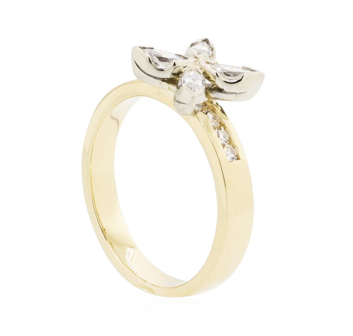One lady's ring featuring: 14KT yellow gold weighing 3.7 grams containing diamonds weighing 0.50ctw. The ring is a size 5.5.