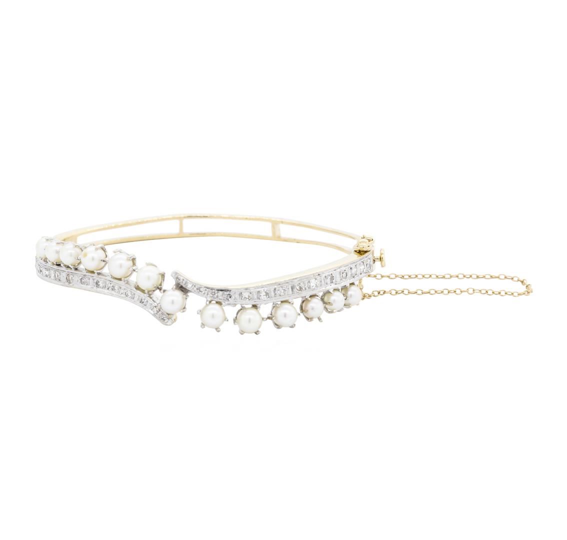 14KT Yellow Gold 0.50ctw Diamond and Pearl Bangle Bracelet