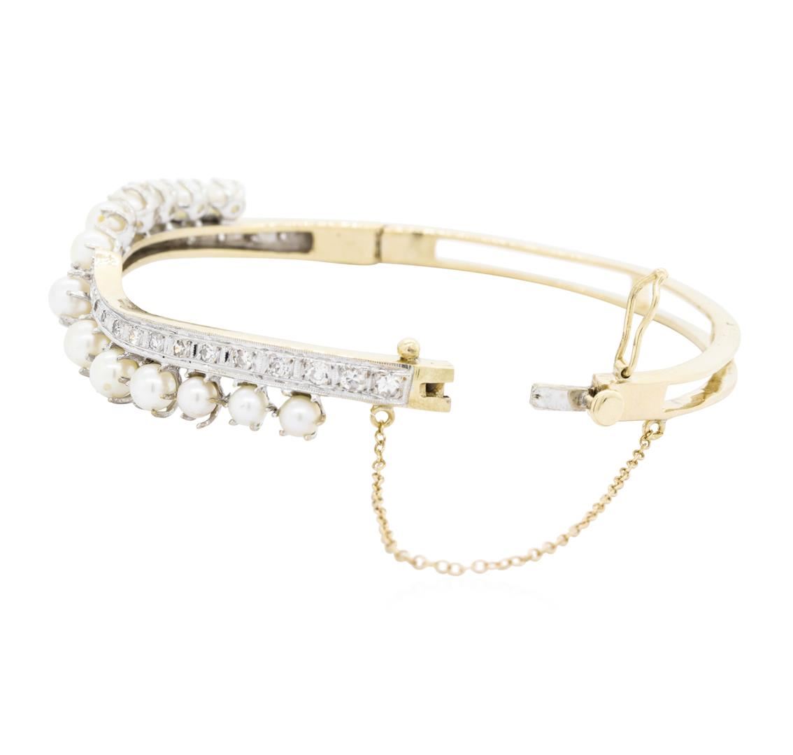 14KT Yellow Gold 0.50ctw Diamond and Pearl Bangle Bracelet