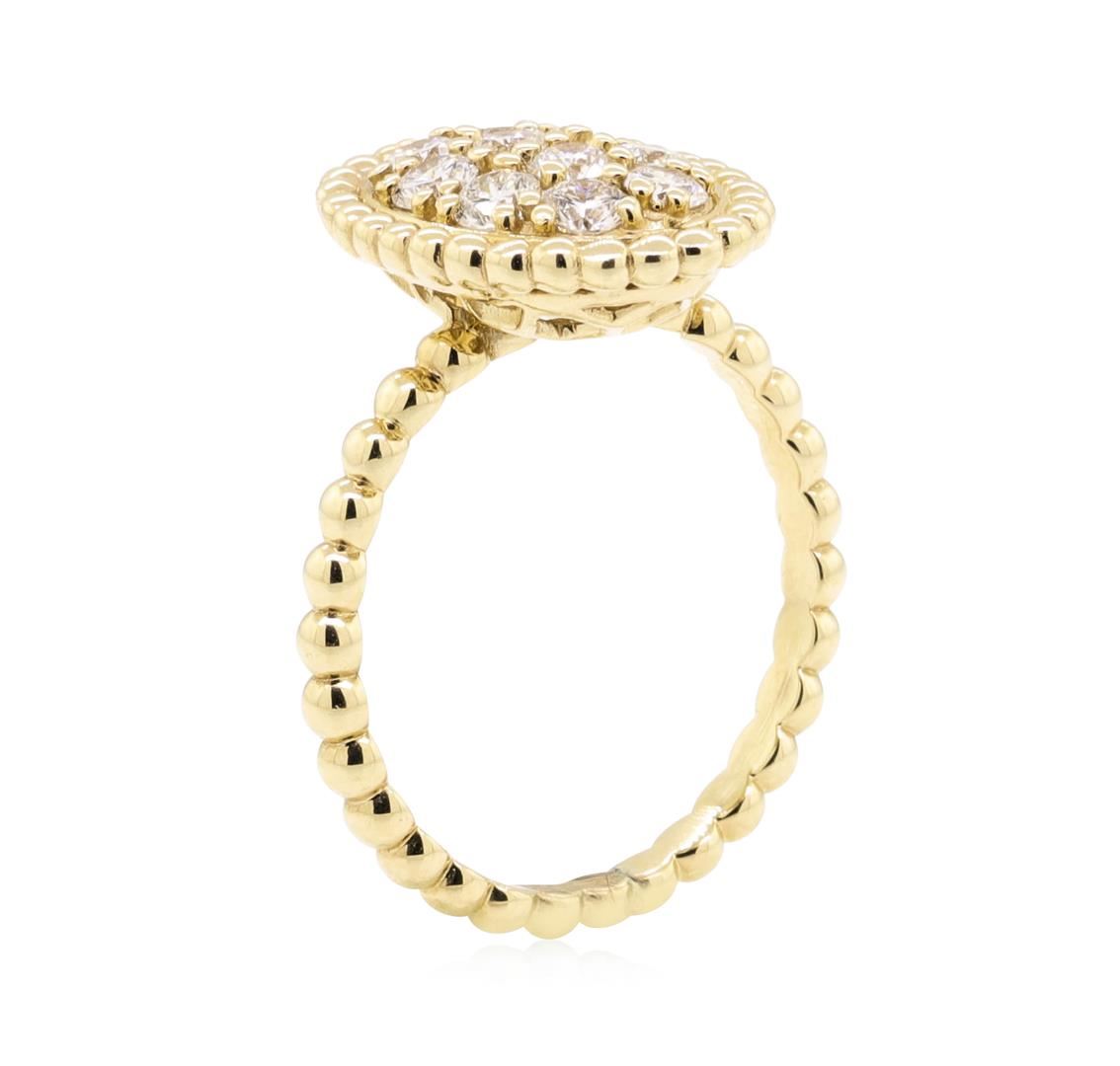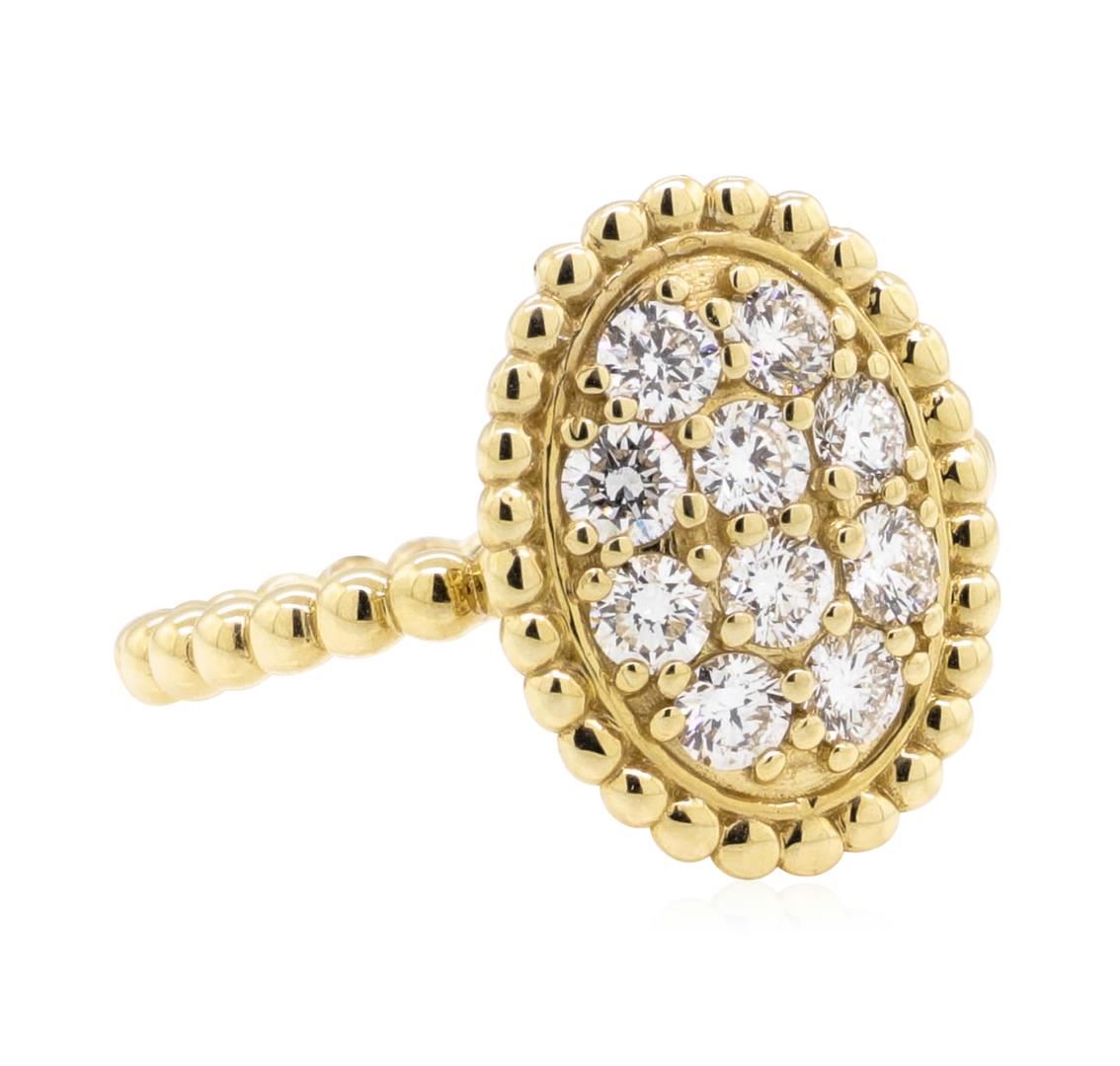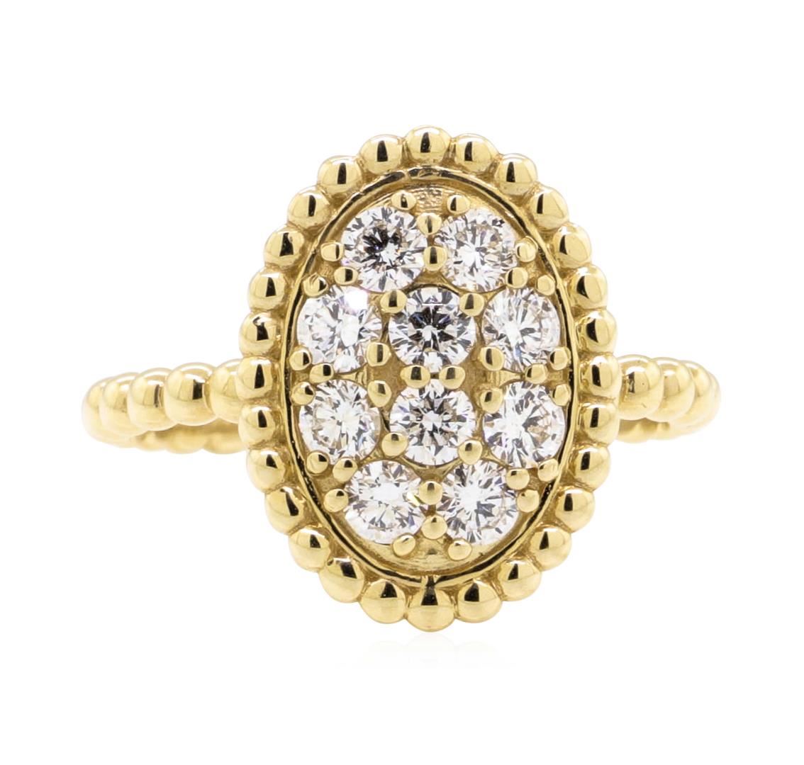 One electronically tested 14KT yellow gold Ladies cast fashion ring with a oval cluster with a bright polish finish. The featured Ladies ring has a rounded bead shank measuring 2.10 millimeters wide. Identified with markings of '14K'. Condition is new, good workmanship. Containing: Ten prong set round brilliant cut diamonds, measuring 2.50 - 2.40 x 1.52mm (depth est.) approximate total weight of 10 Stones = 0.56ct. Graded in the setting. Color G - H Clarity VS-2 to SI-1 Cut Very Good. Total Weight of Diamonds 0.56ct.. Total Weight of Ring 3.80gm. GAS Appraised.