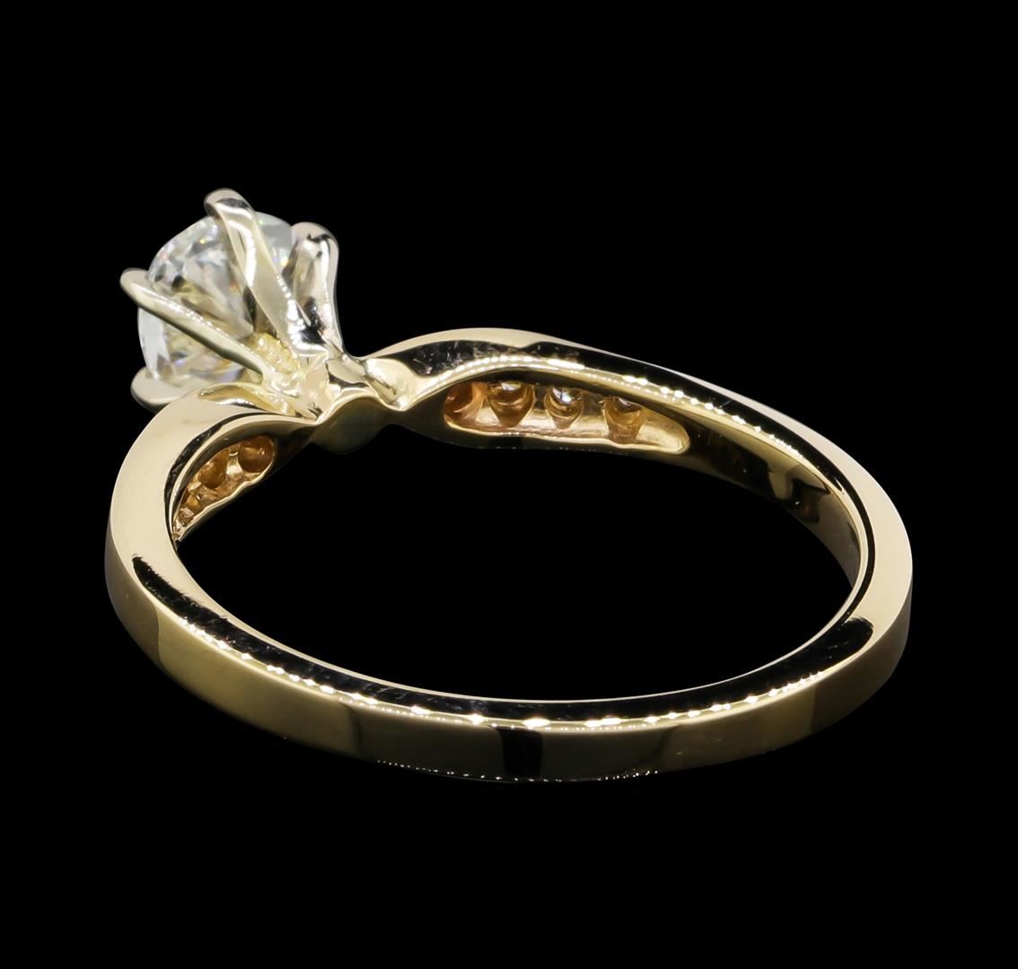 One Ladies ring featuring: 14KT yellow gold weighing 2.5 grams containing one center diamond weighing 0.50ct and diamonds weighing 0.06ctw.