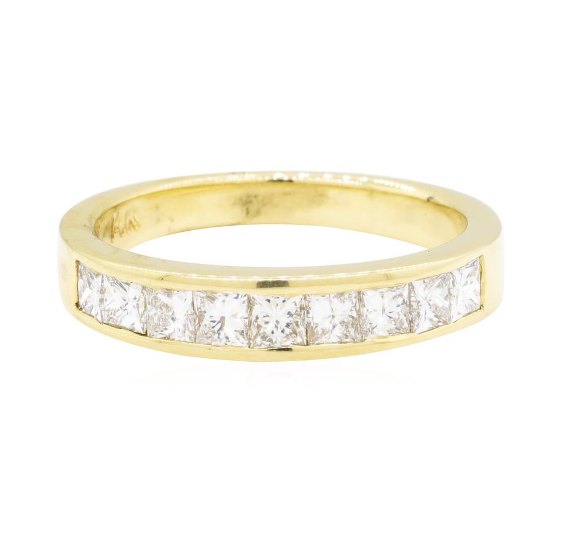 One ring featuring: 14KT yellow gold weighing 2.8 grams containing nine princess cut diamonds weighing 0.60ctw. The ring is a size 5.