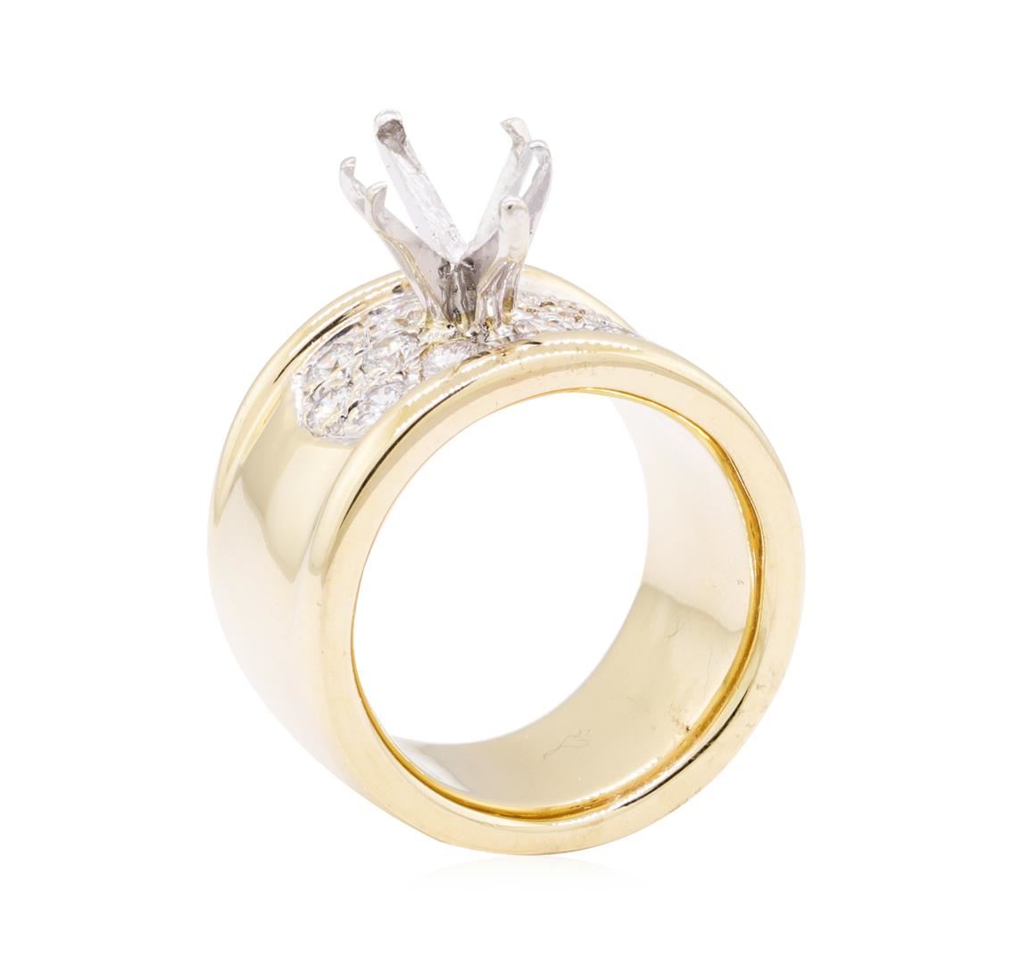 One wide pave semi mount lady's ring featuring: 14KT yellow gold weighing 21.1 grams containing diamonds weighing 0.60ctw. The ring a size 6.