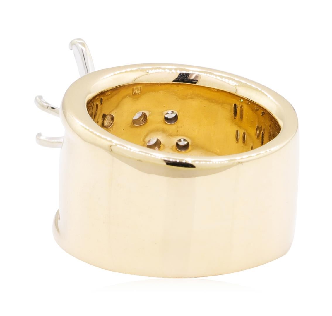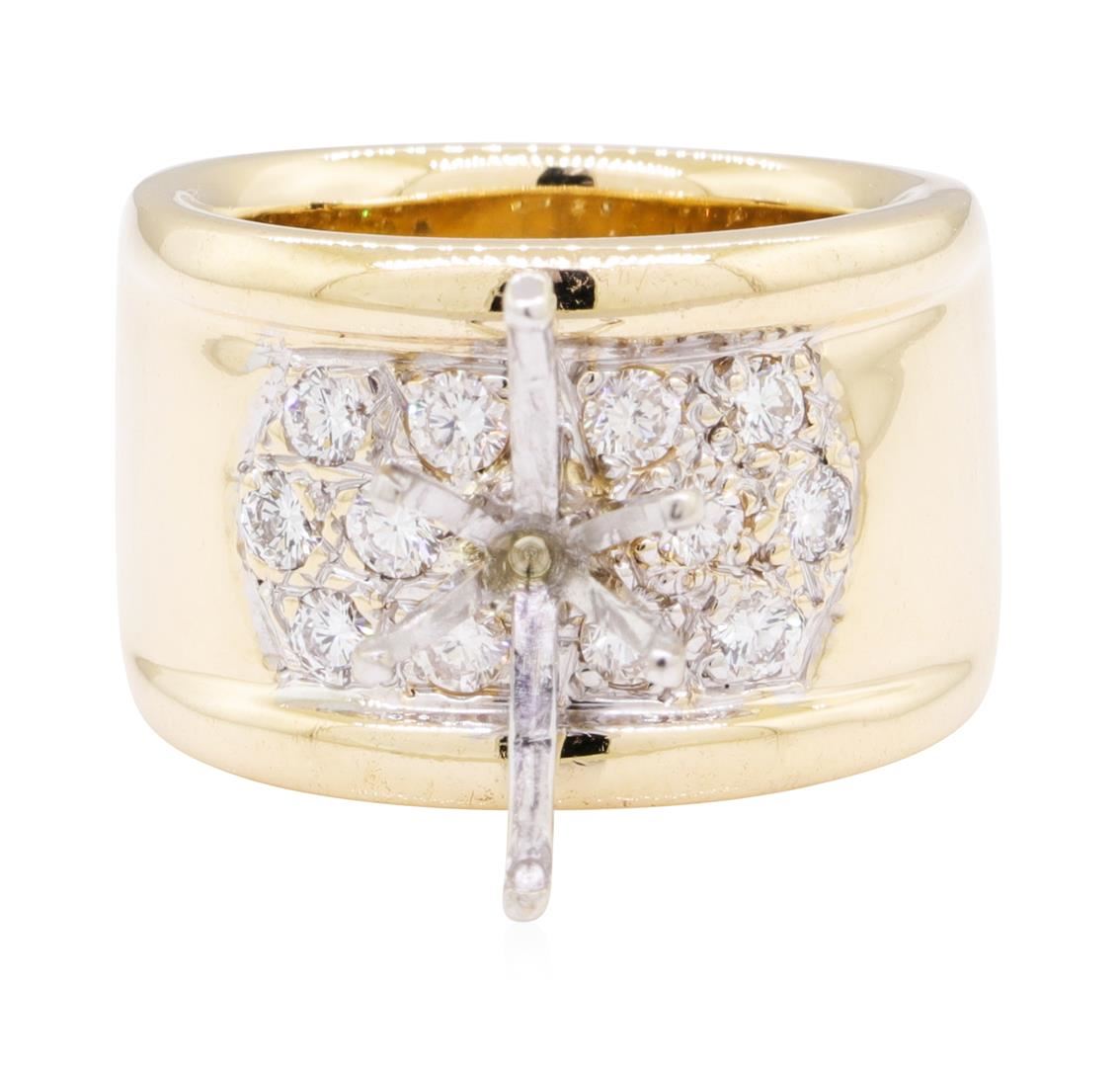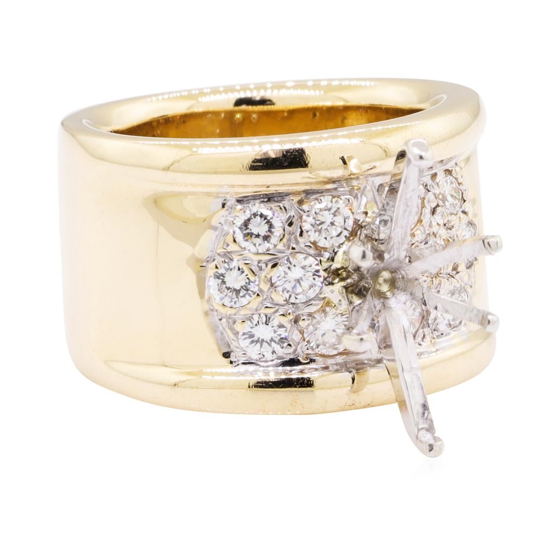 One wide pave semi mount lady's ring featuring: 14KT yellow gold weighing 21.1 grams containing diamonds weighing 0.60ctw. The ring a size 6.