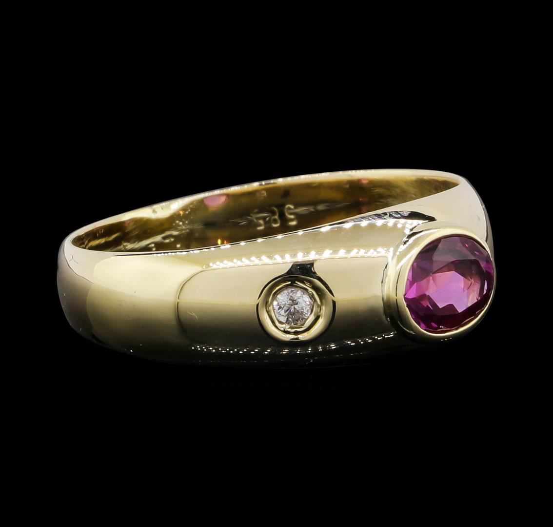 One Ladies ring featuring: 14KT yellow gold weighing 1.6 grams containing one pink sapphire weighing 0.60ct and diamonds weighing 0.04ctw.