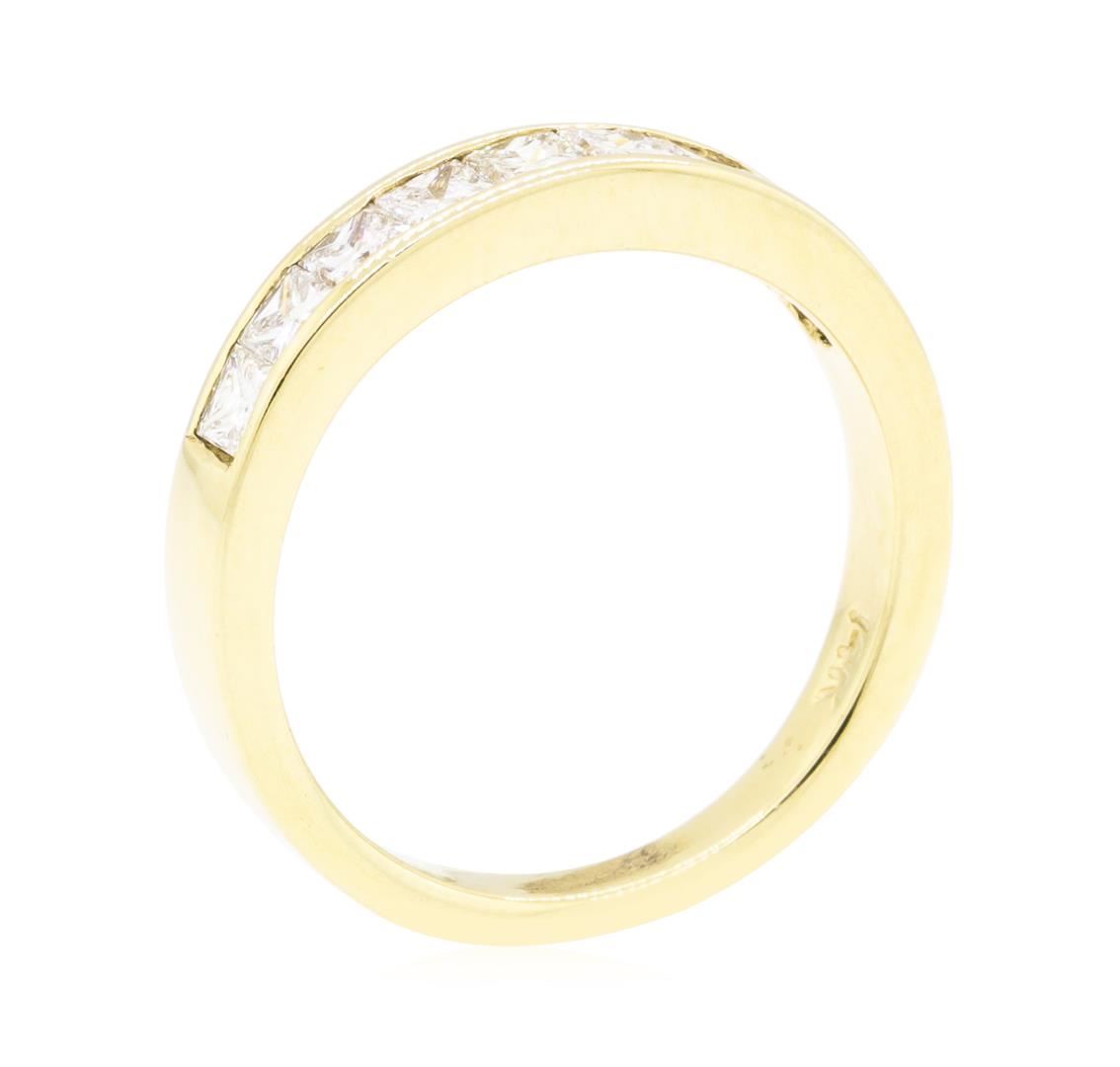 One ring featuring: 14KT yellow gold weighing 2.8 grams containing nine princess cut diamonds weighing 0.60ctw. The ring is a size 5.