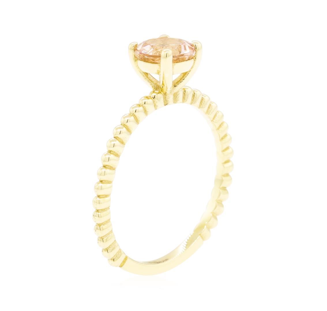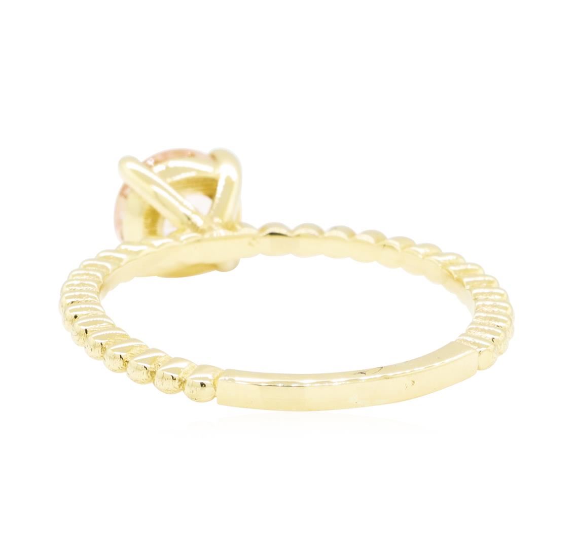 One ring featuring: 14KT yellow gold weighing 2.0 grams containing one morganite weighing 0.75ct. The ring is a size 6.