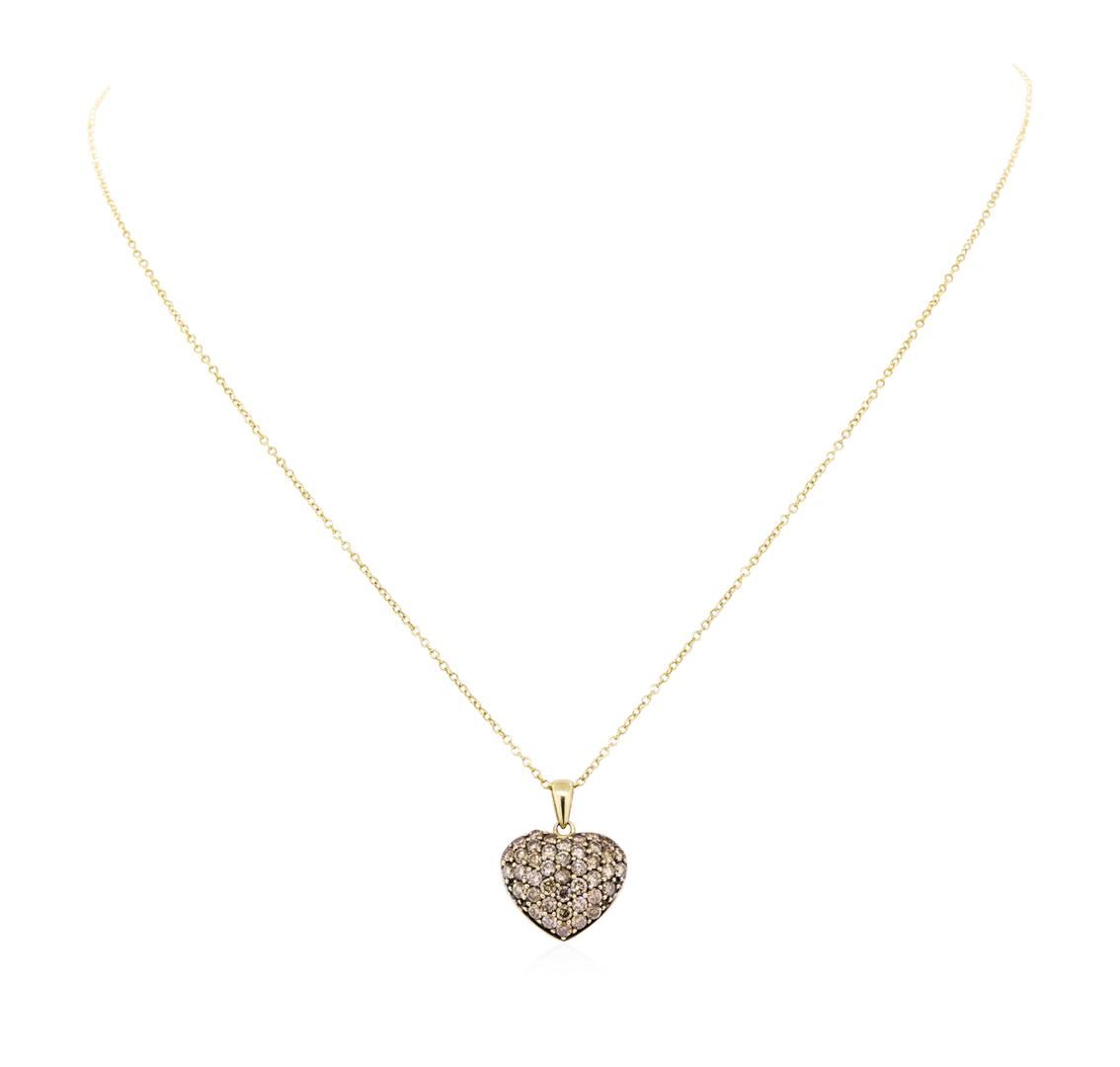14KT Yellow Gold 0.80 ctw Chocolate Diamond Heart Shaped Pendant with Chain