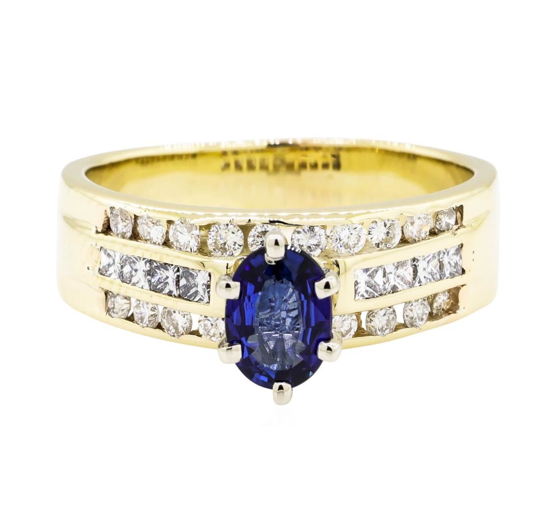 One ring featuring: 14KT yellow gold weighing 6.0 grams containing one sapphire weighing 0.83ct and diamonds weighing 1.20ctw. The ring is a size 8.5.