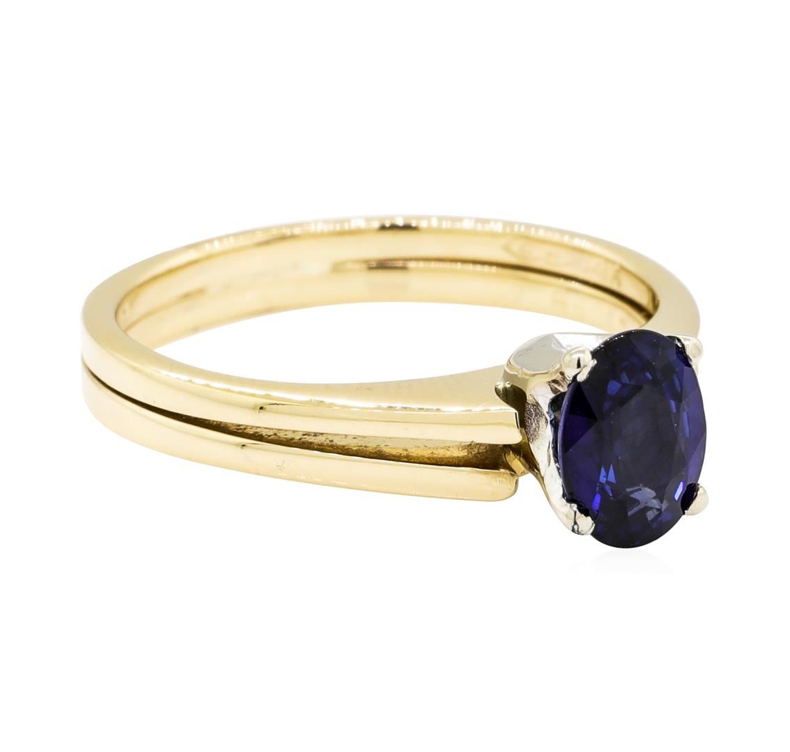 One ring featuring: 14KT yellow gold weighing 3.7 grams containing one sapphire weighing 0.92ct. The ring is a size 6.
